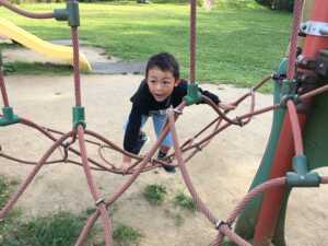 ゆっくりめの時間で来所したお友達は宿題・課題に取り組んだ後、四丁目公園で遊具遊びを行いました。