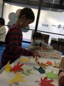 折り紙でどんぐり・いちょう・もみじを作ります。