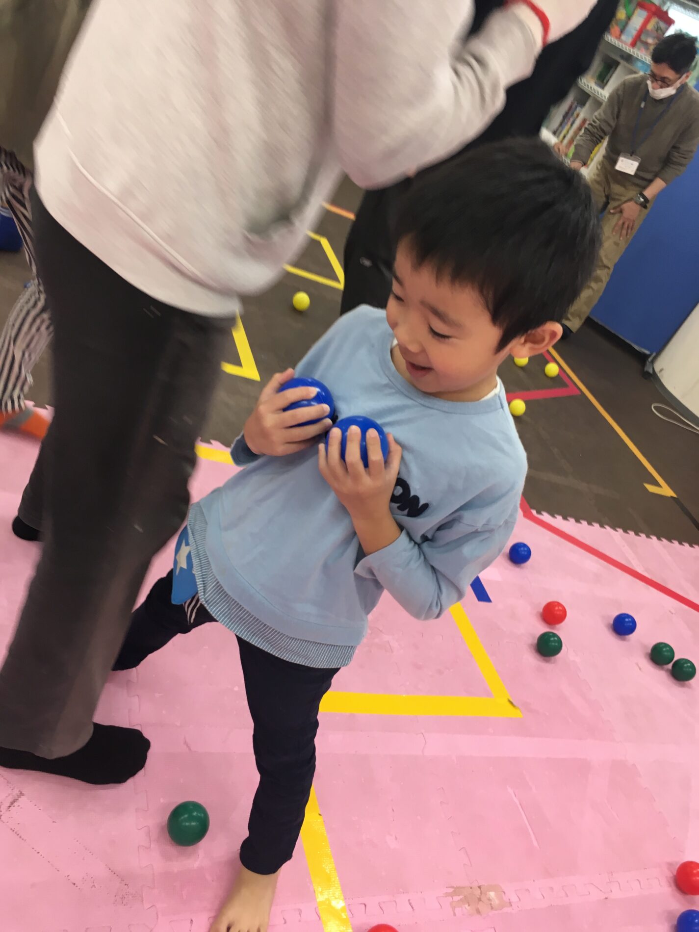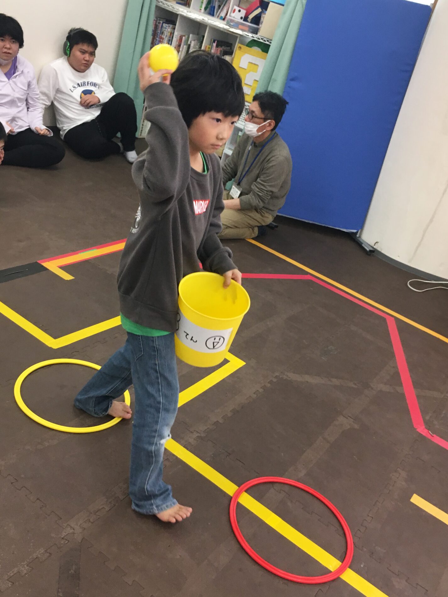 おばけにつかまらないように、ボールを箱に入れようね(✿◡‿◡)