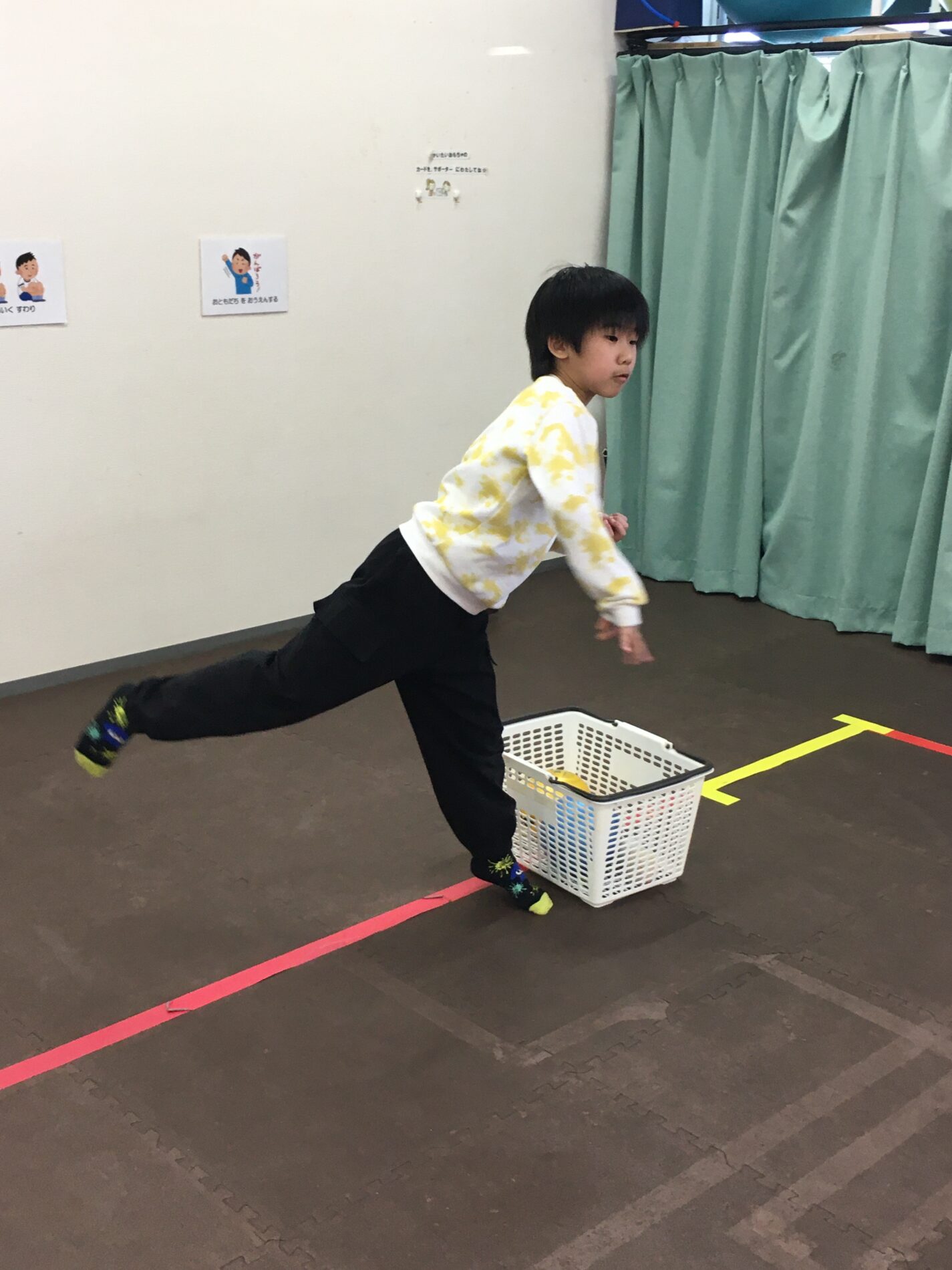 始まりの会、ラジオ体操の後は、運動活動です。風船バレーや、ストラックアウトをしました。