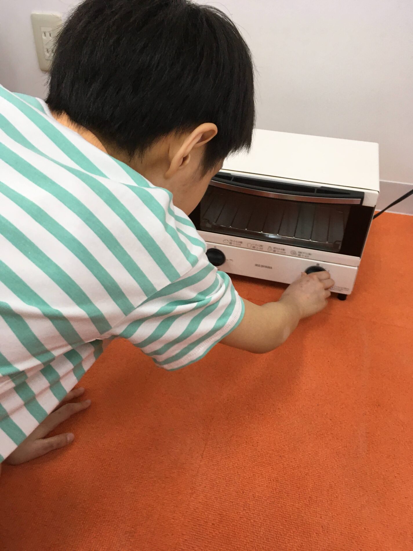 お友だちに、トースターのダイヤル操作や、プラバンを平らにする作業を経験していただきました。
