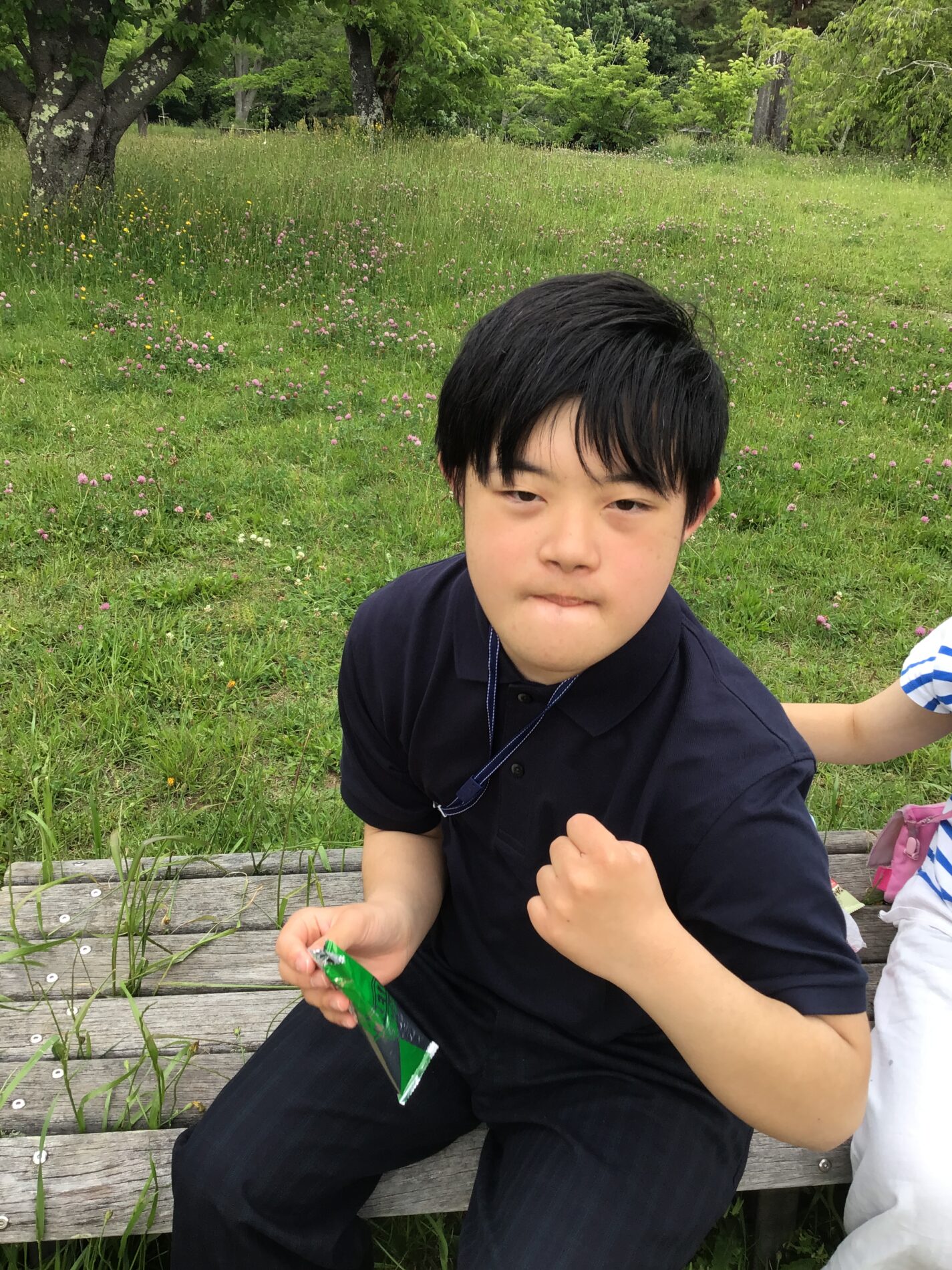 今日は、三神峯公園にお出かけして、着いたらおやつを食べました。