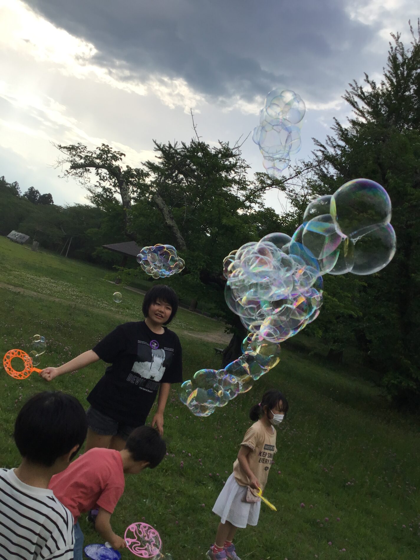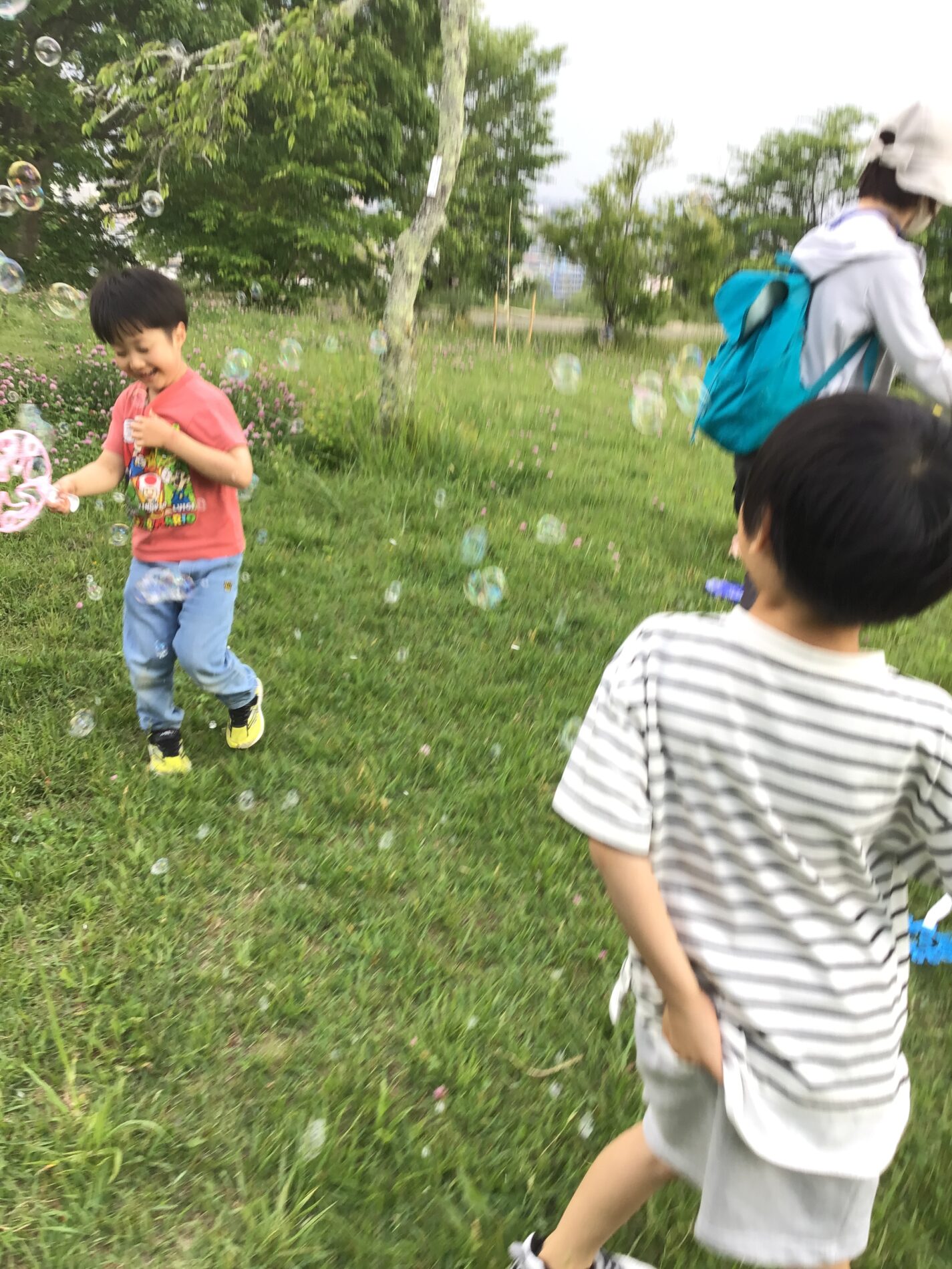 せっかく公園に来ましたので、ボール遊び(野球、ドッチボール)、シャボン玉、遊具で遊びました。
