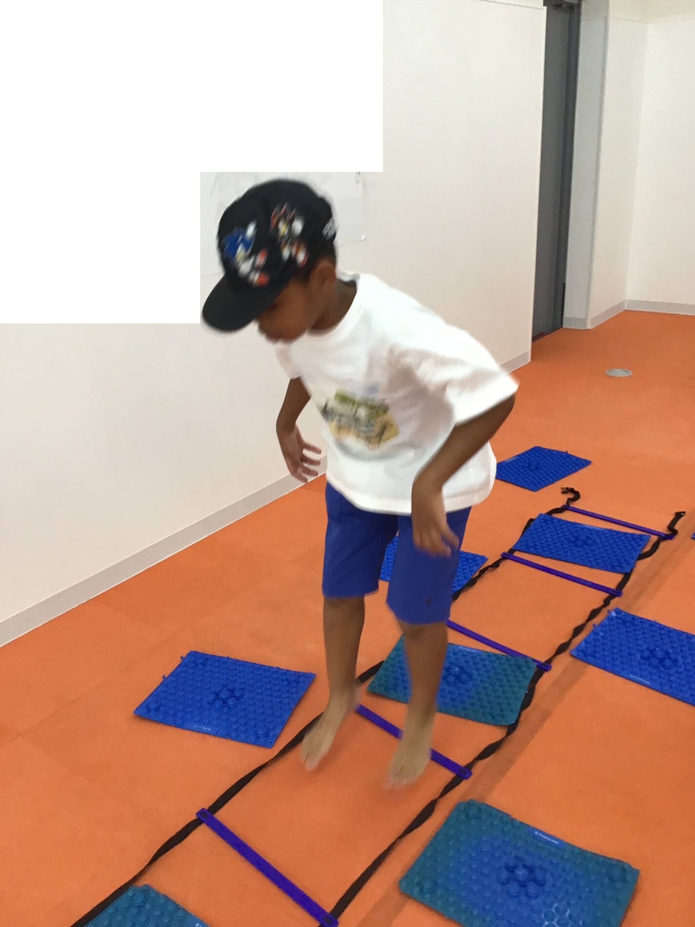 ジャンプした先にはサポーターがバランスボールを持って構えています!(^^)!