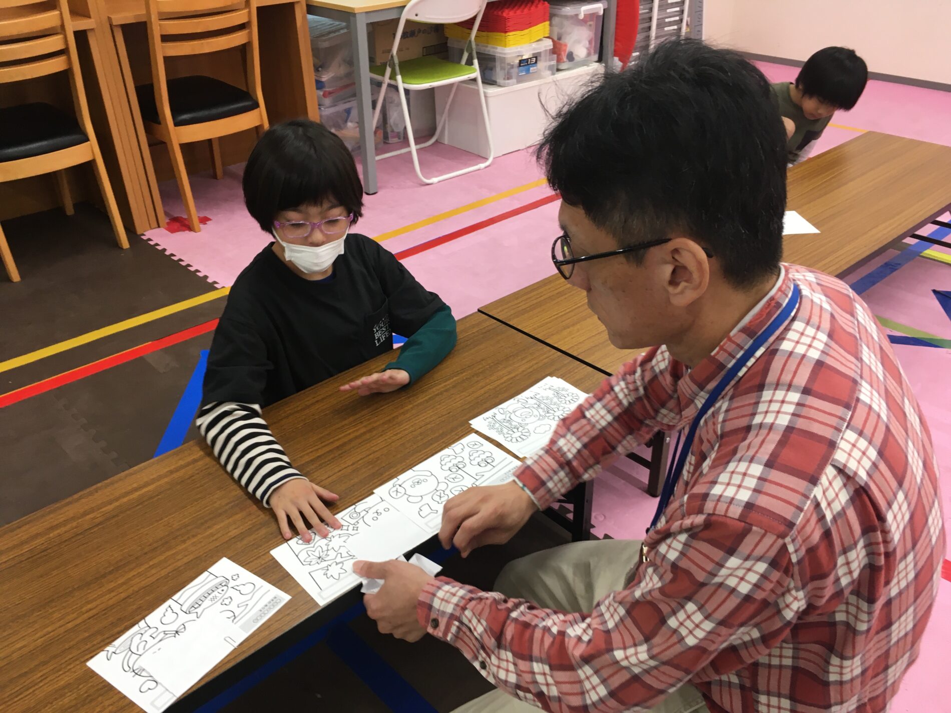 塗り絵が上手に出来たね。自分で考えたイラストもいいね