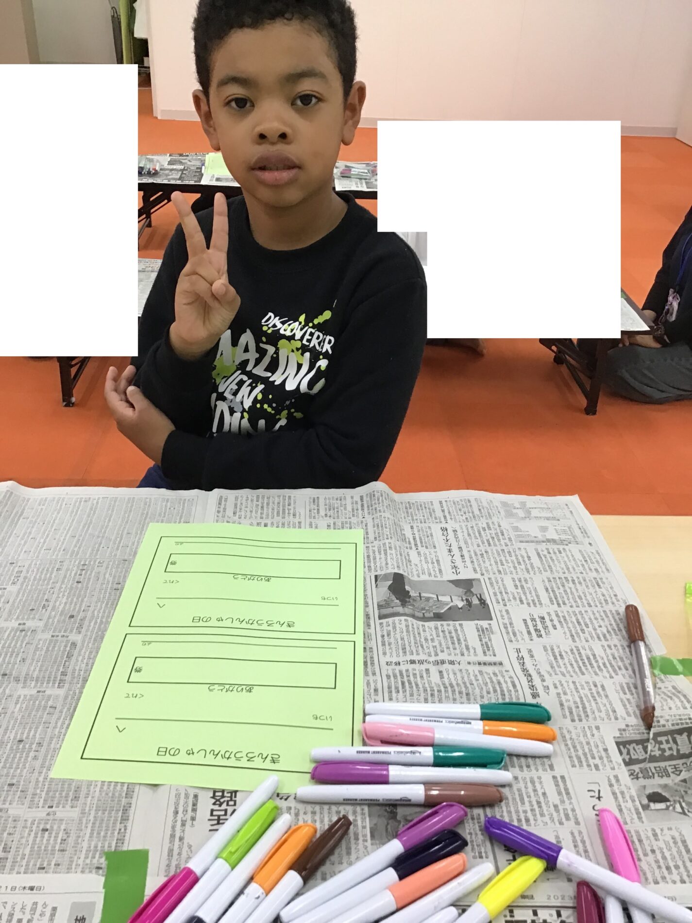お友だちみんな書き終えたら、サポーターにラミネートしてもらい、そして記念撮影を行いました。