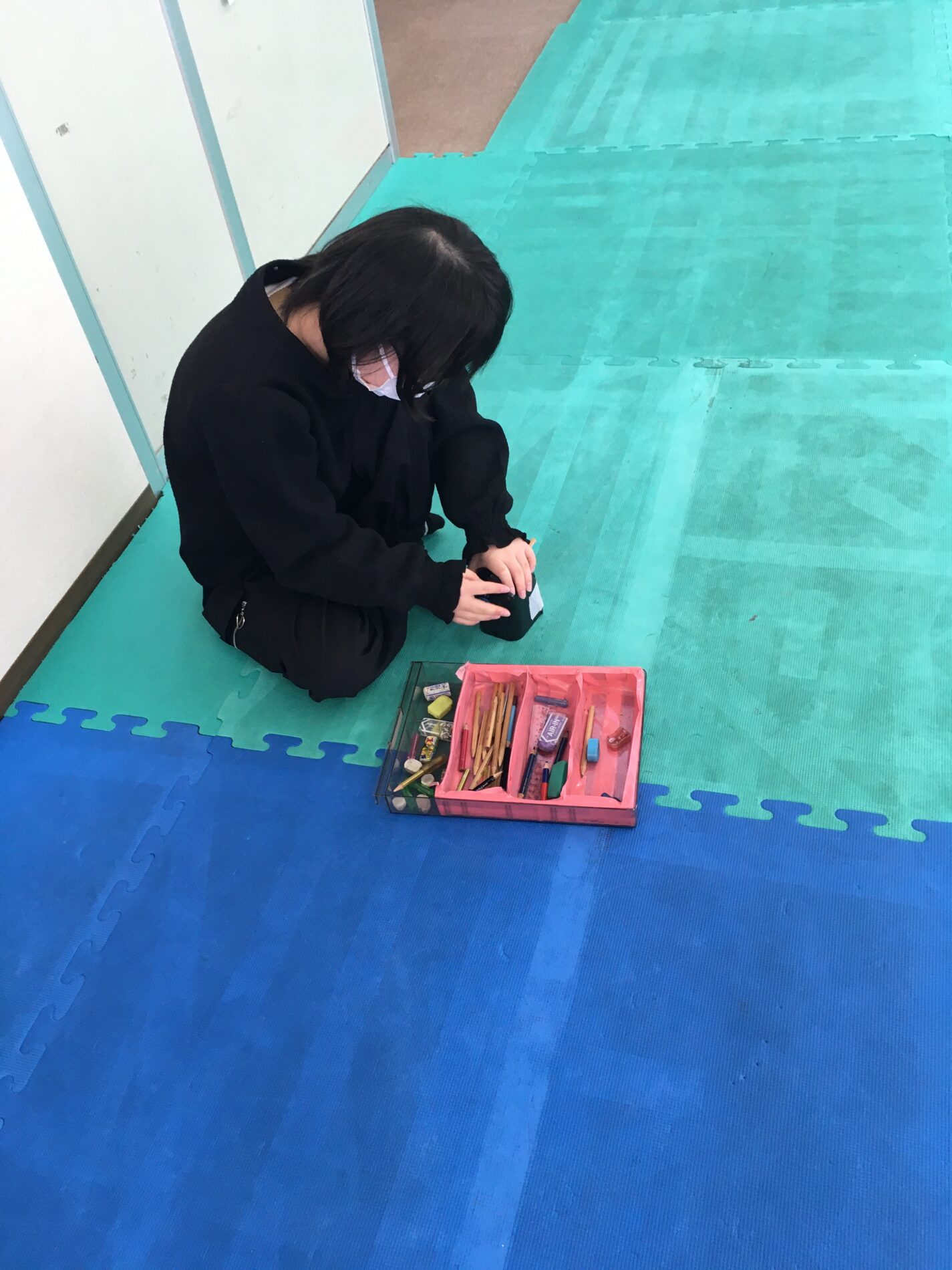 チャレンジタイムの前に鉛筆削りのお手伝いをしてくれたお友達。お手伝いに感謝です。
