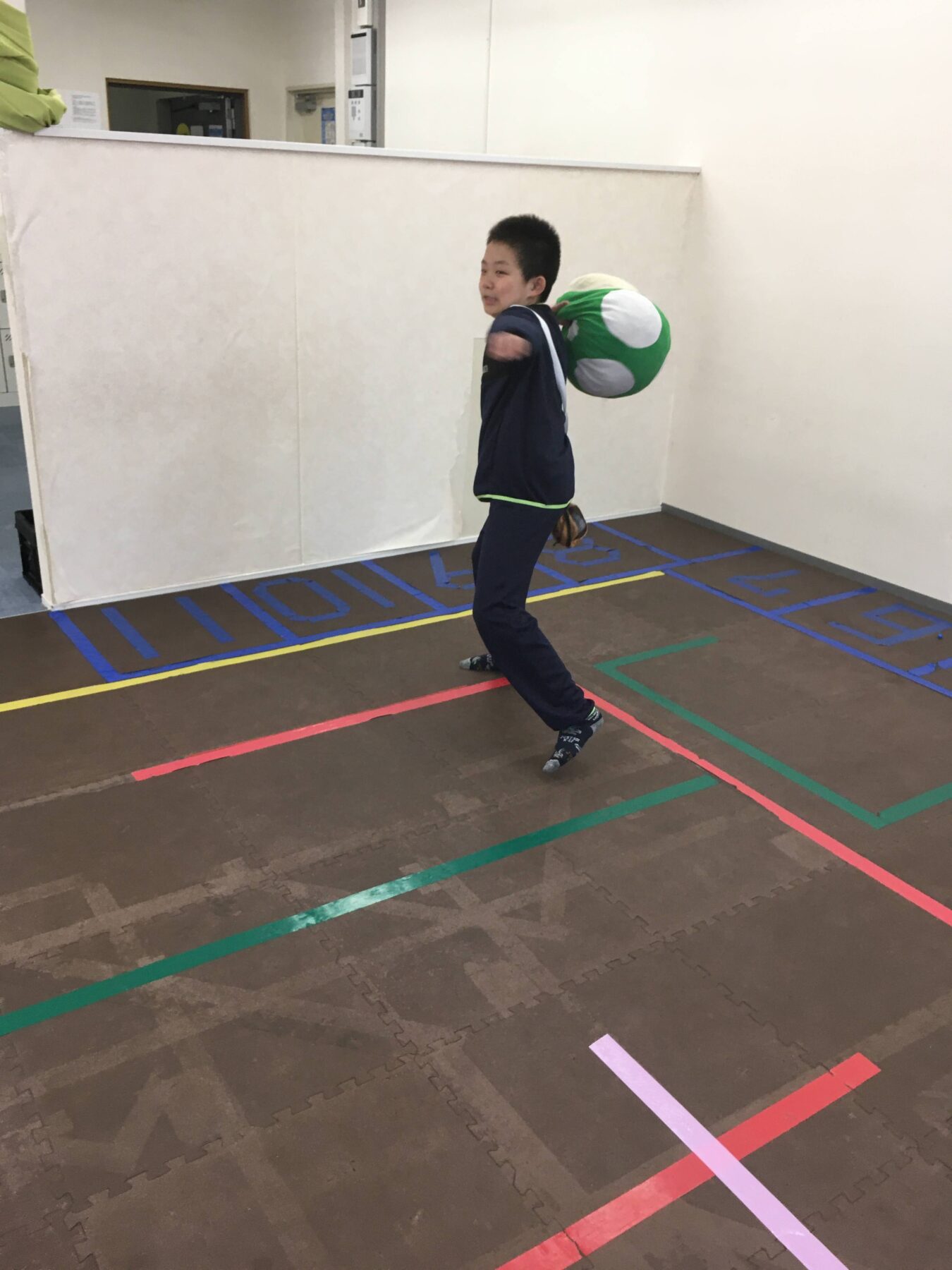 サポーターが作った大きな兜におりがみで折った兜とこいのぼりを付けるお友だちもいました😎