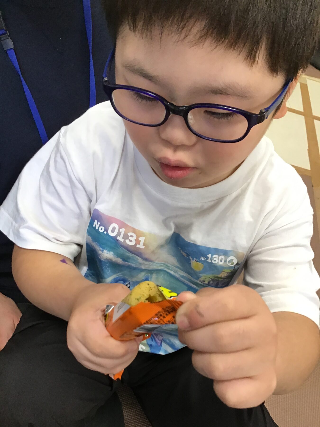 お気に入りのスナック菓子を美味しそうに召し上がっております😋