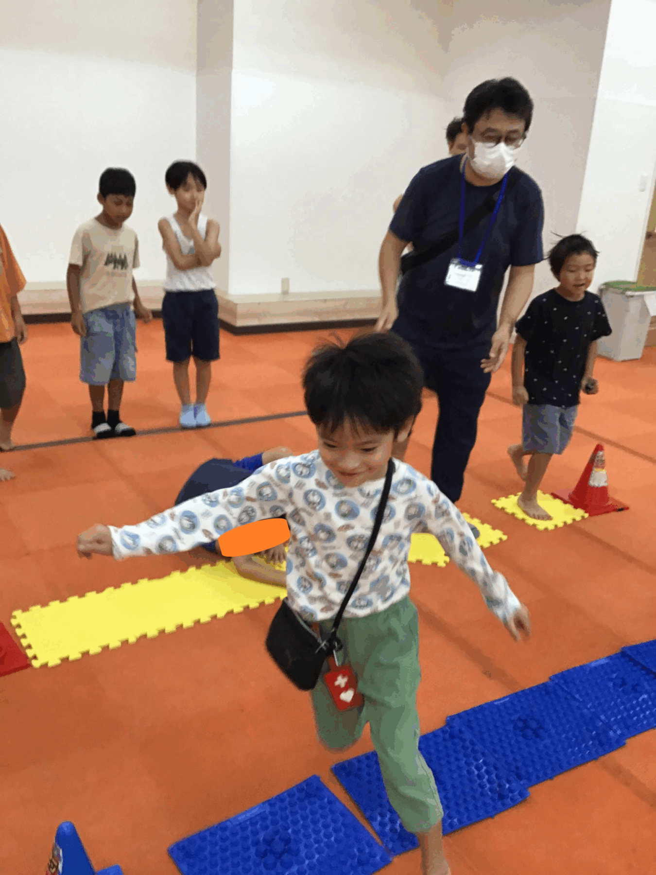 渡りきる途中で、鬼を避けたり、ドラゴンマットを避けたりするなど、状況判断力や静と動の切り替えを鍛える内容になっております。