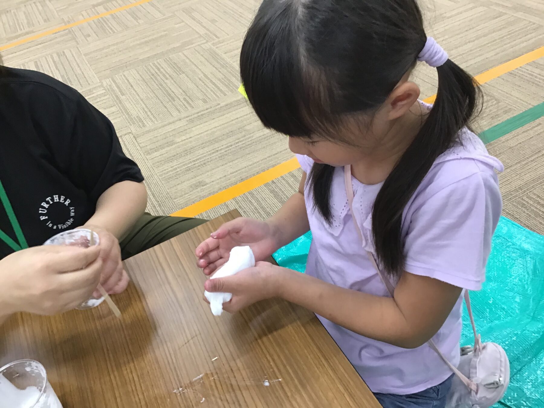 「手に付きにくいね~」「ふわふわする~」と様々な気付きを言葉にして楽しみました。
