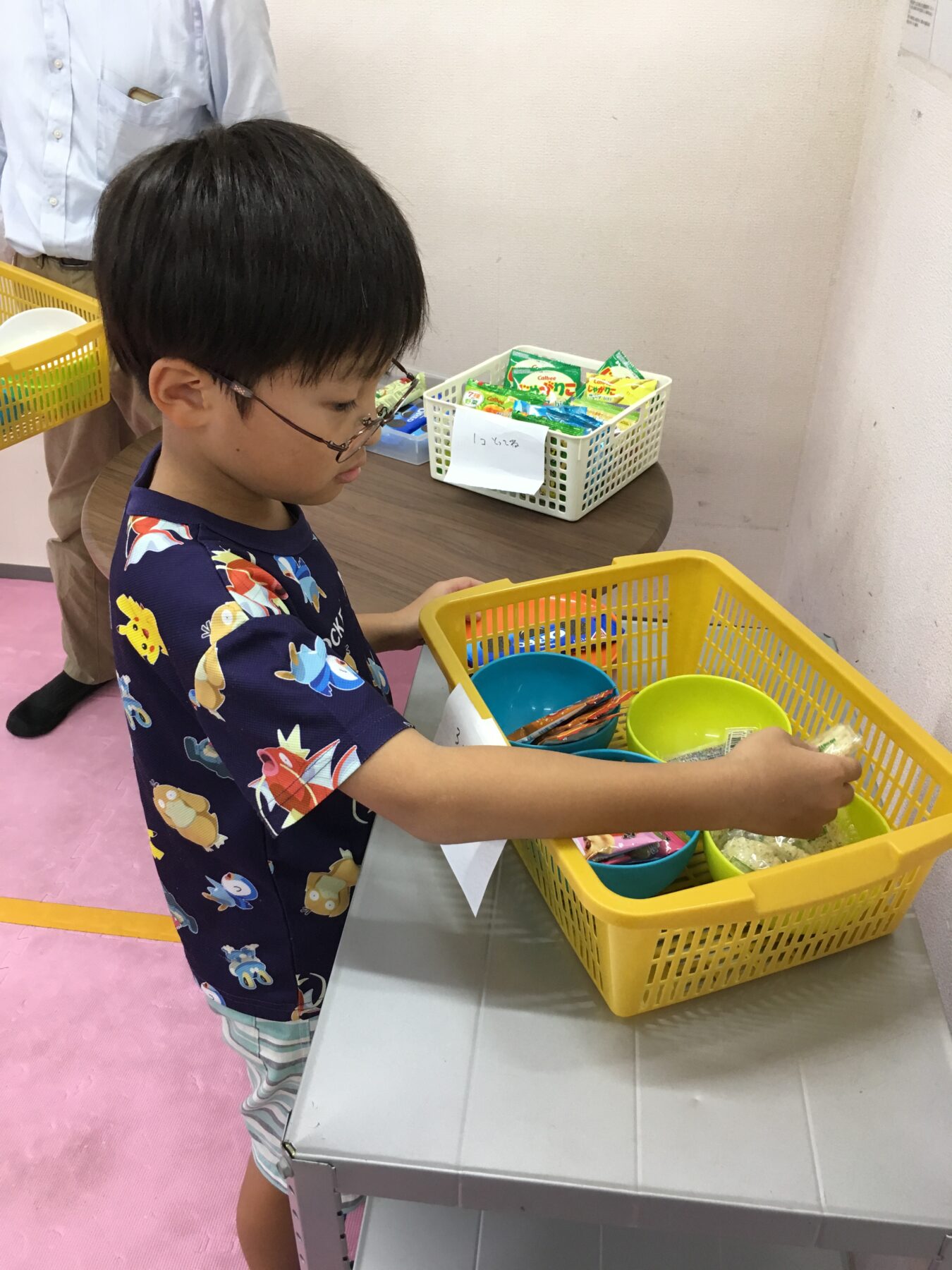 みなさんこんにちは。 リッキーガーデン仙台柳生サポーターの畠山です。 今日のリッキーガーデン仙台柳生は「駄菓子屋リッキー」の日です。 最初に「のせのせミッション」で体を動かそう。 今日はコーン…