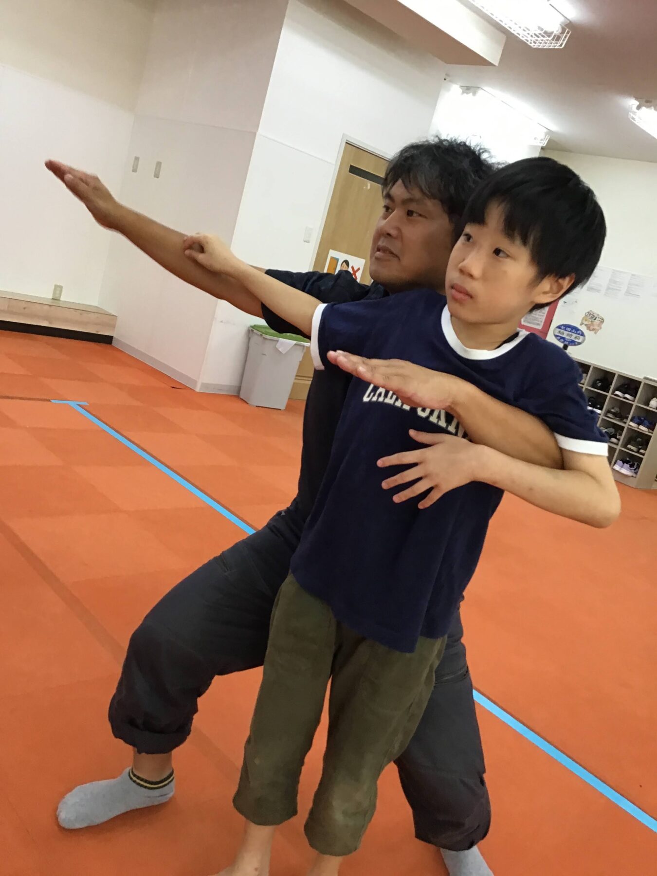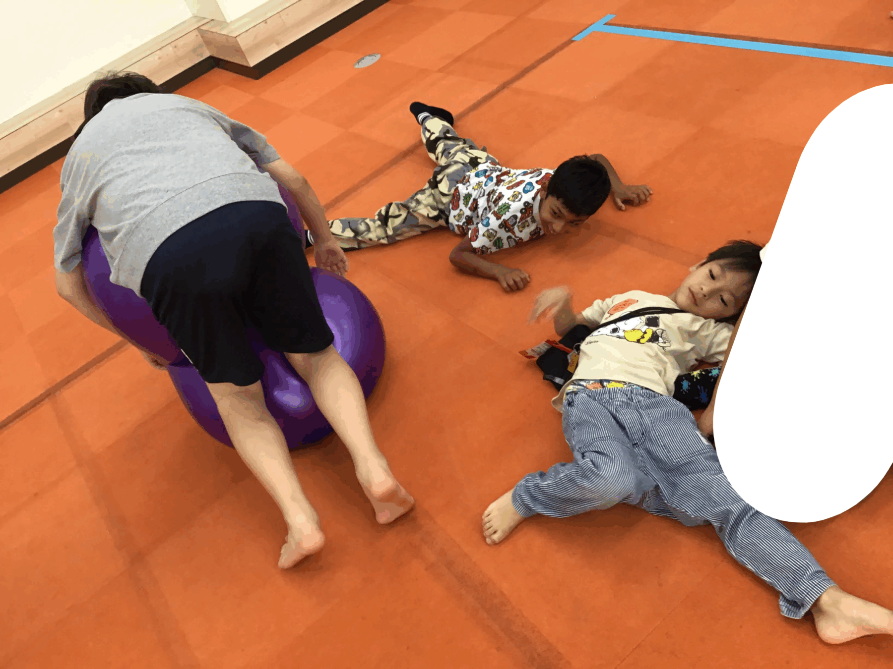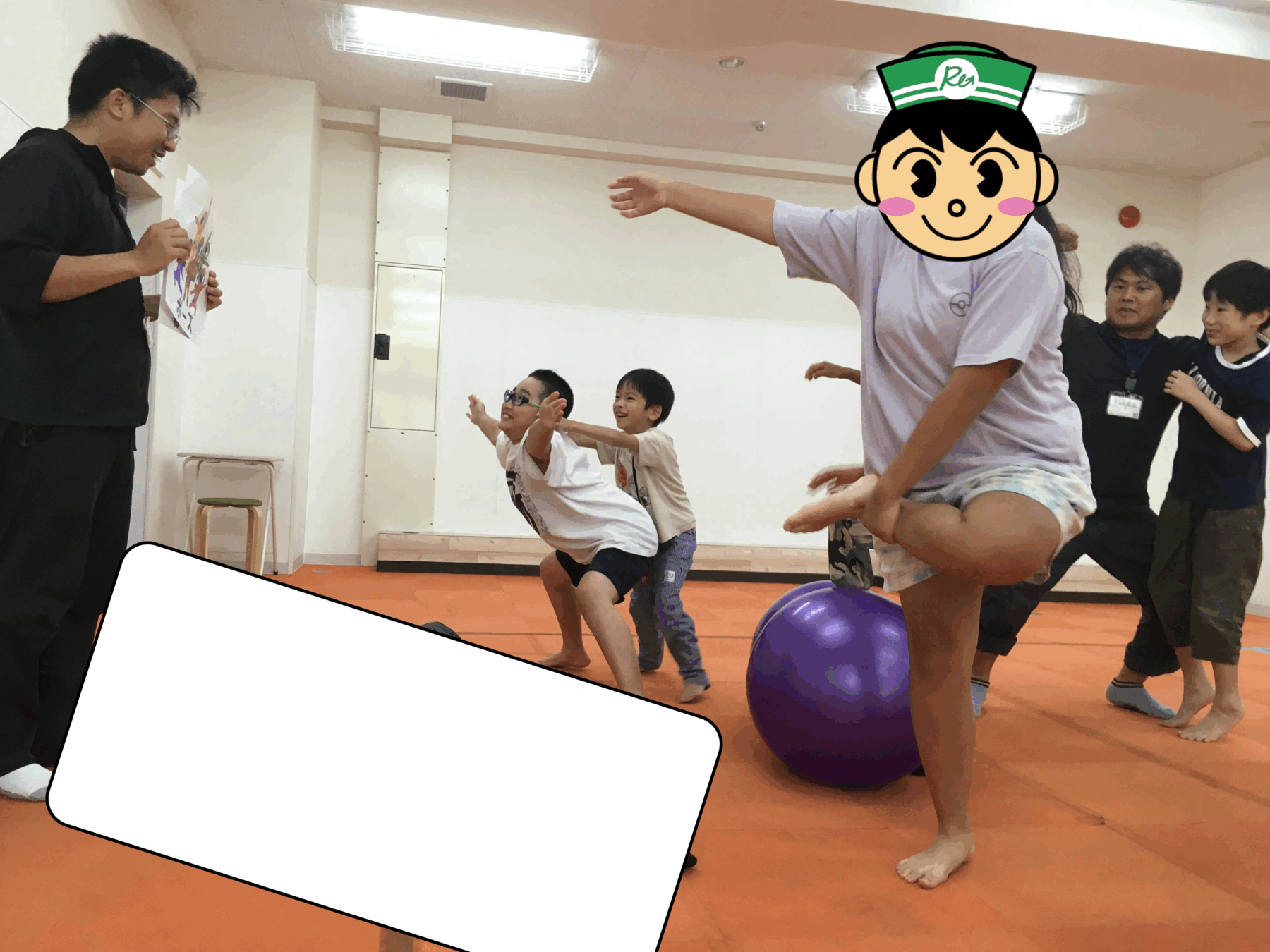 内容は、だるまさんが「転んだ」以外にも「だるまさんは、止まった・寝た・ポーズをした」と声に出し、そのポーズに合わせて体を動かすなど、聞く・見る・動く等の様々な動きを同時に行うことを高める目的です。