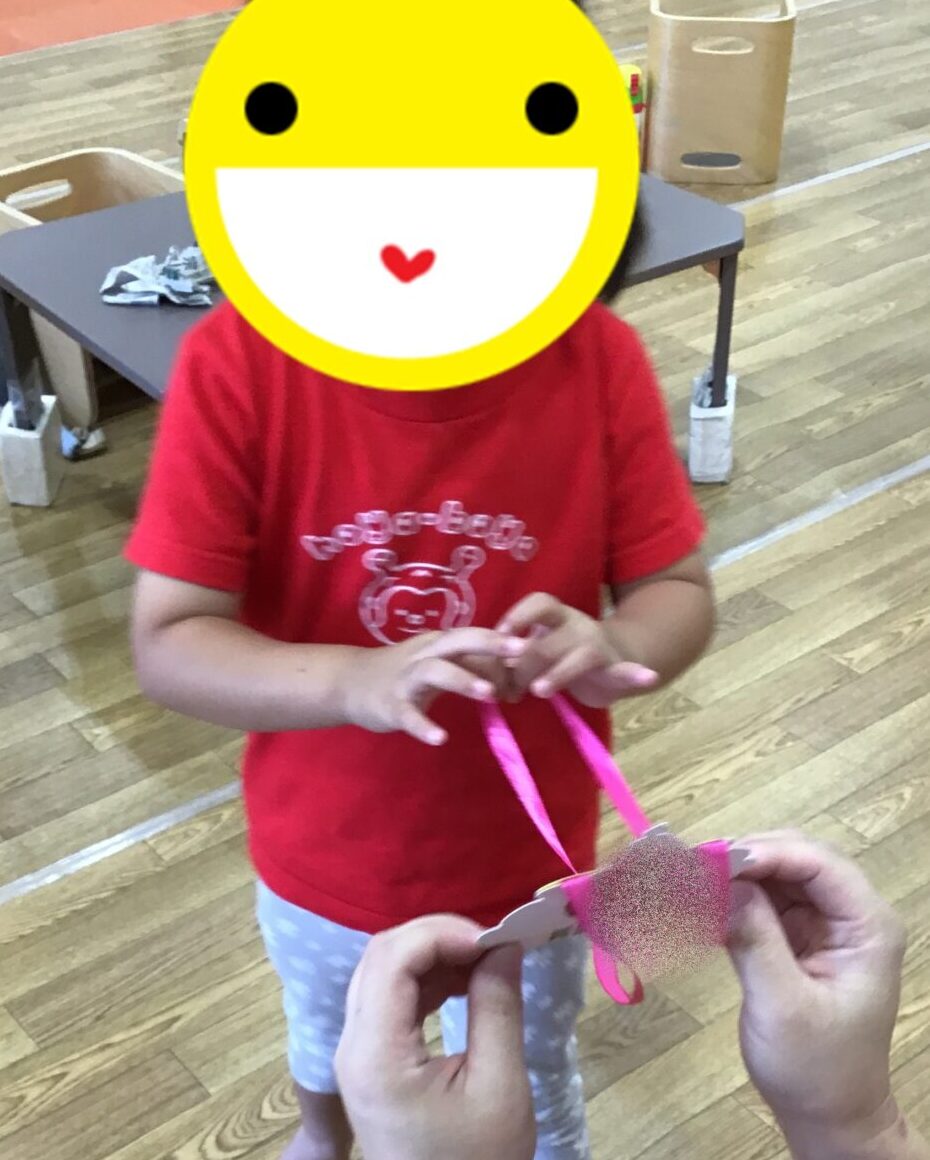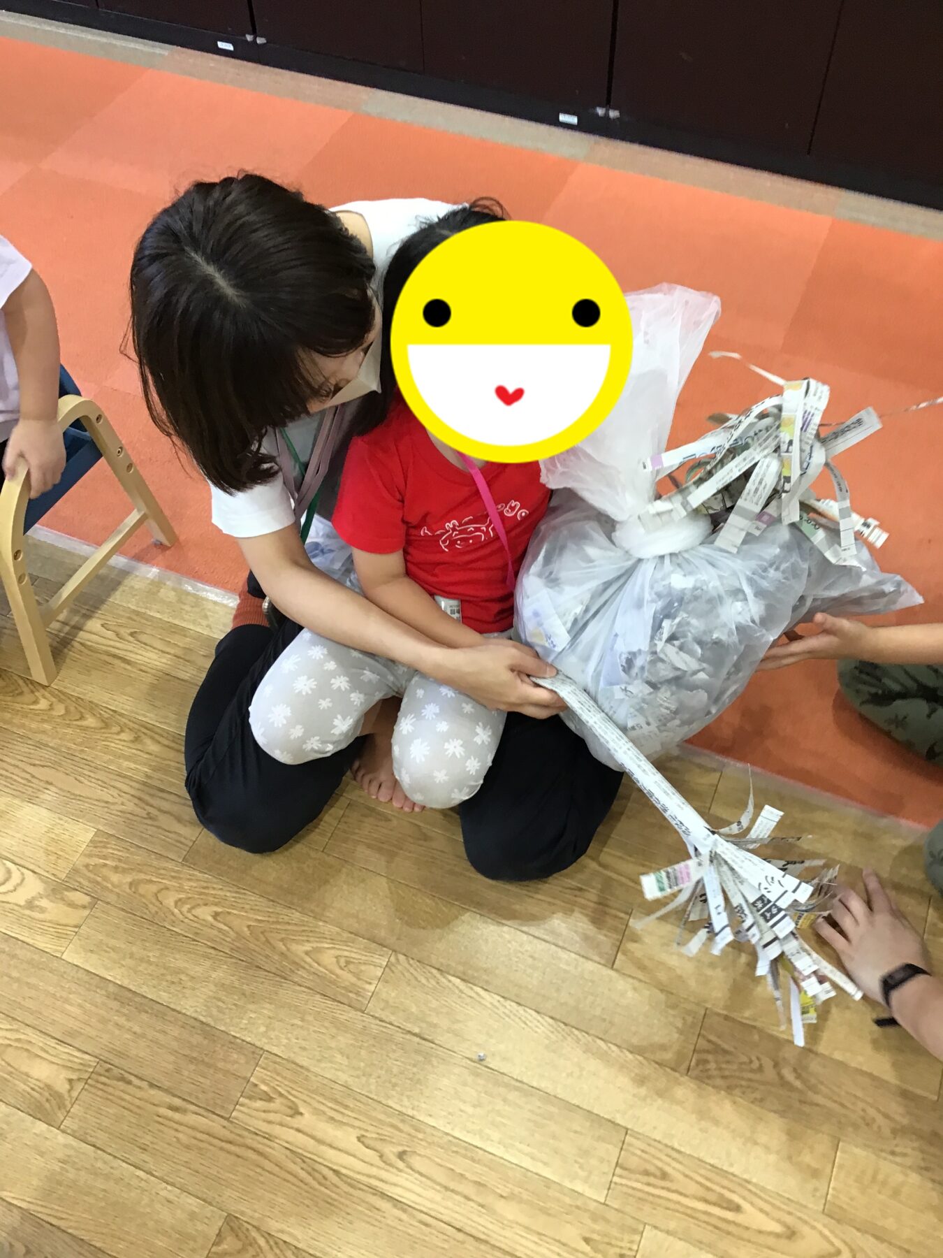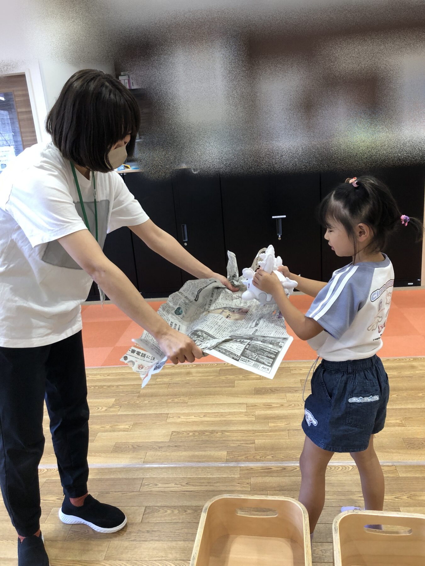 新聞紙シアターの作り方を聞いてくれたお友だちもいました!