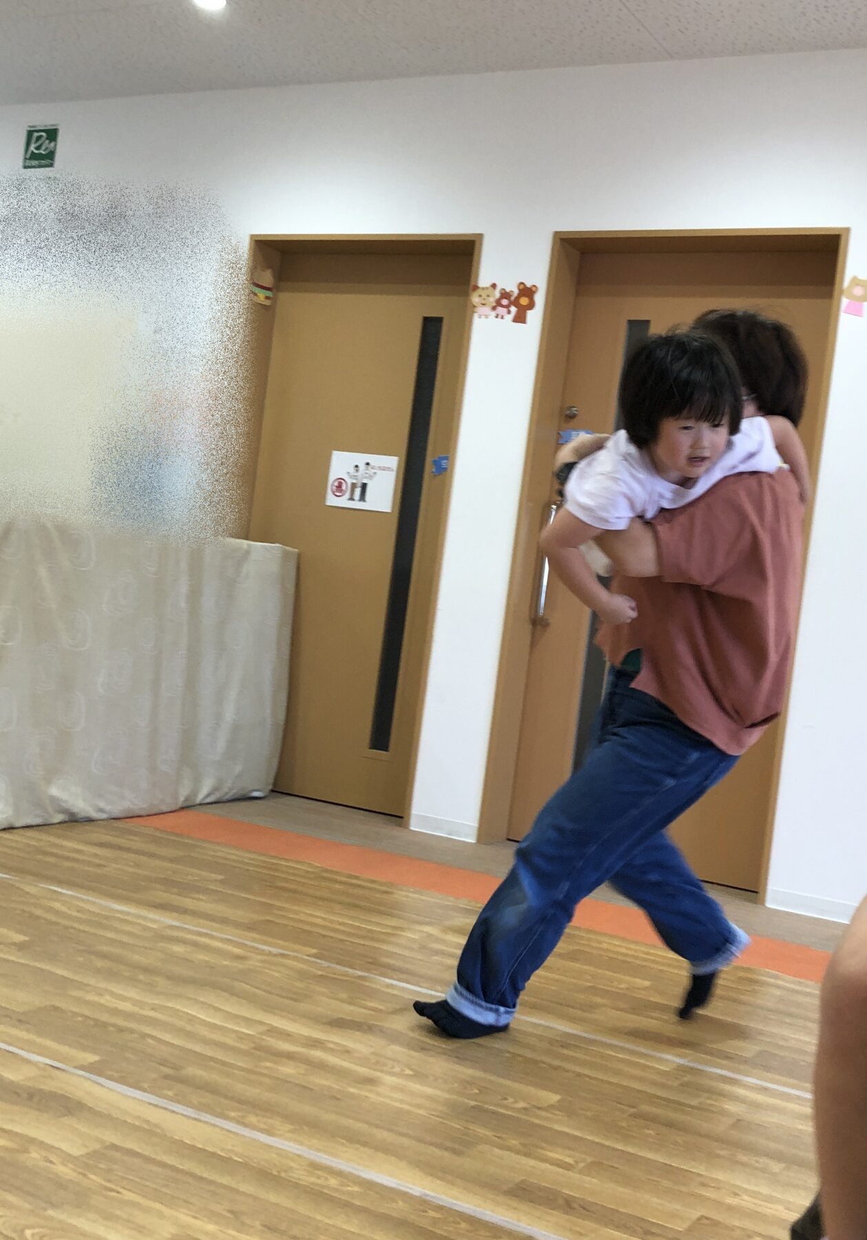 サポーターが飛行機にしてお友だちの周りを一周しました!!