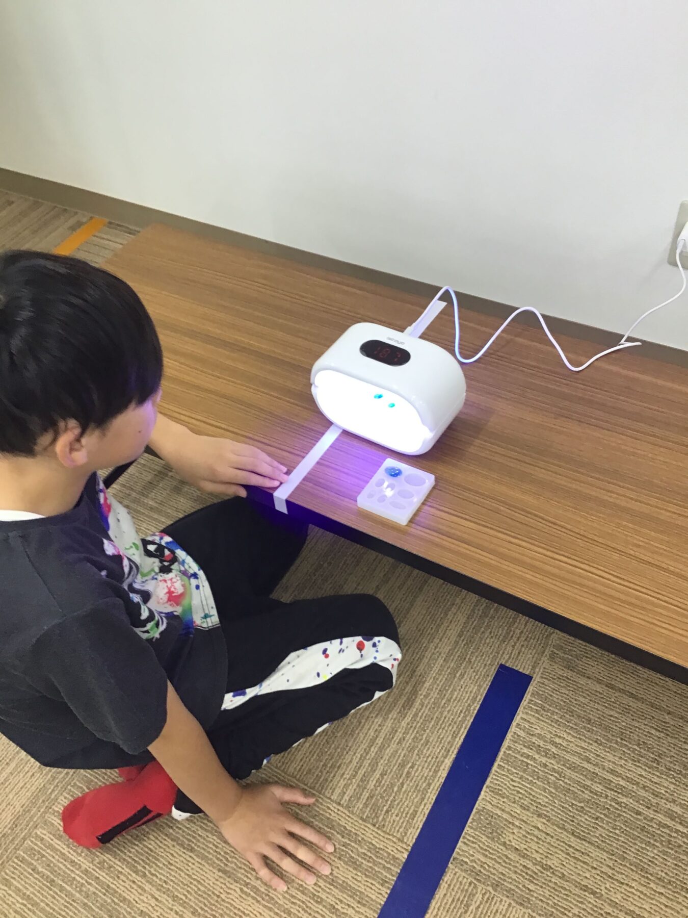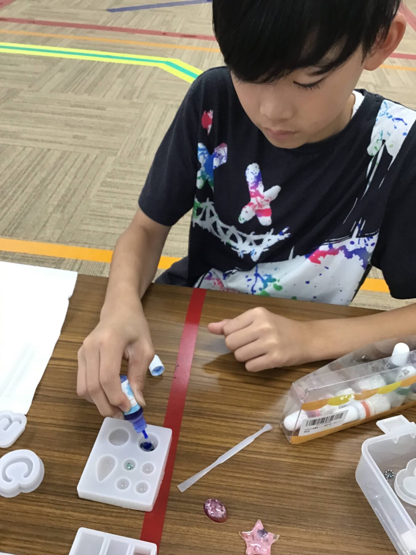 キラキラの破片をレジンの中に入れたり、レジンのビー玉作りを集中して楽しんでおりました。