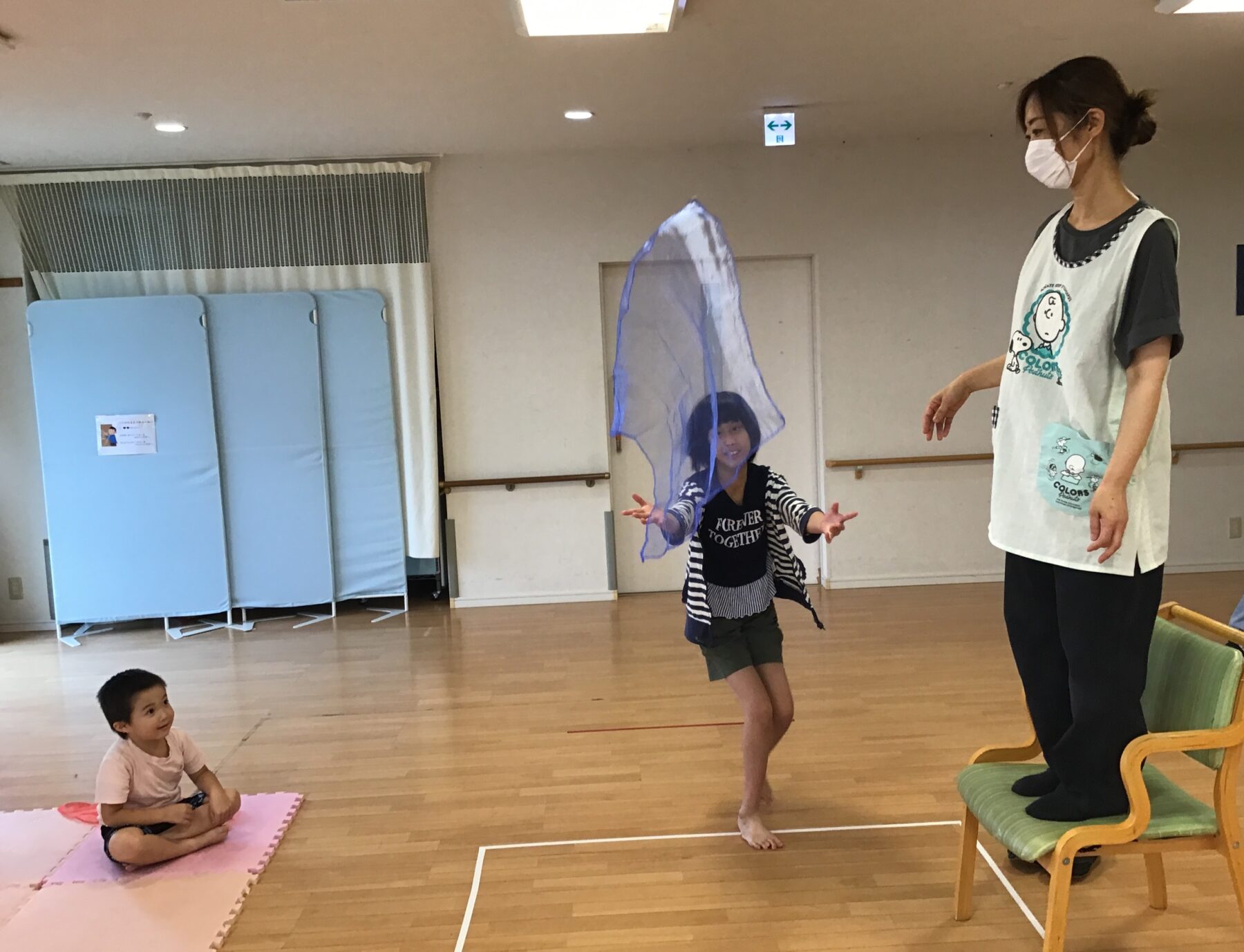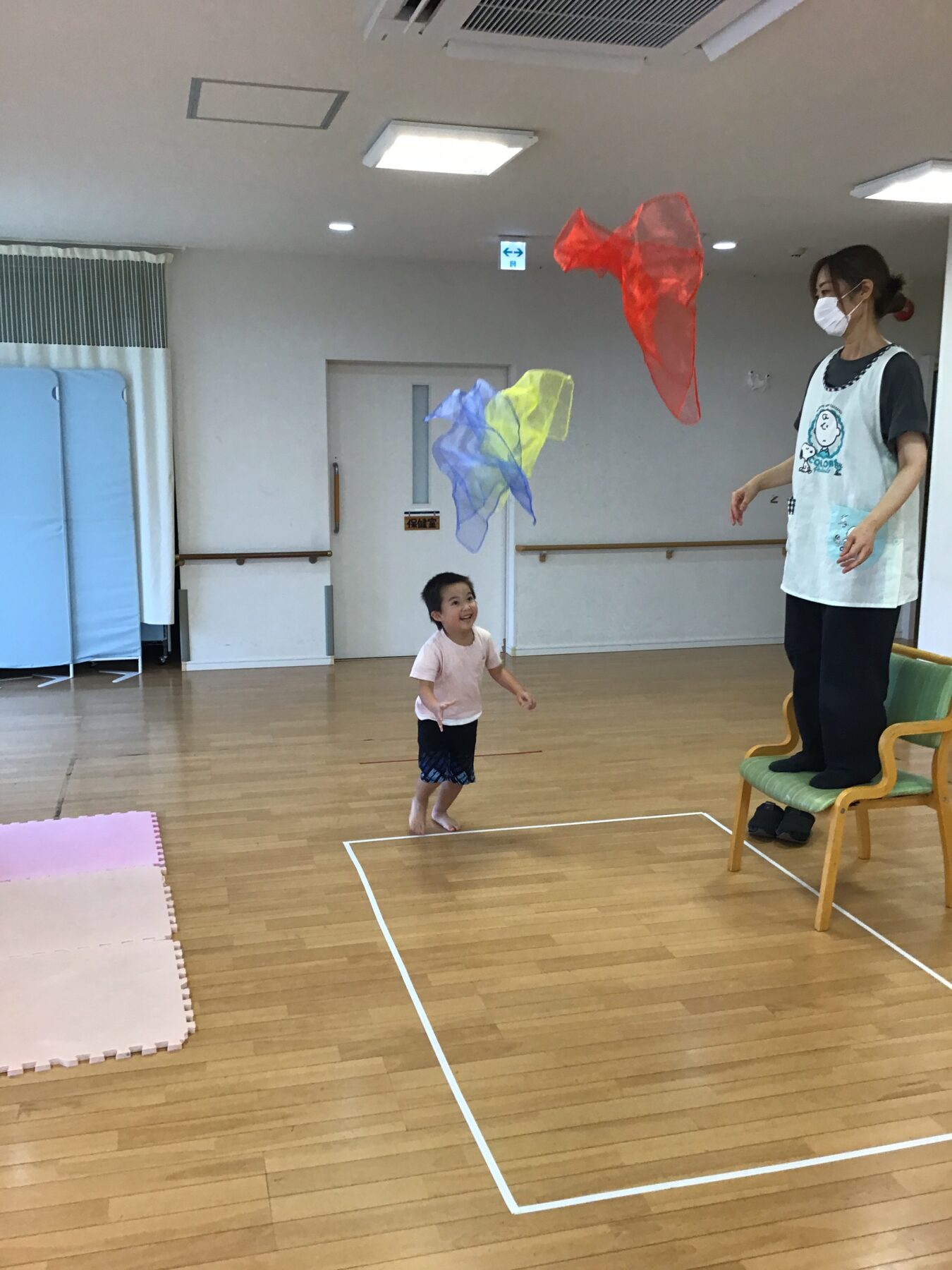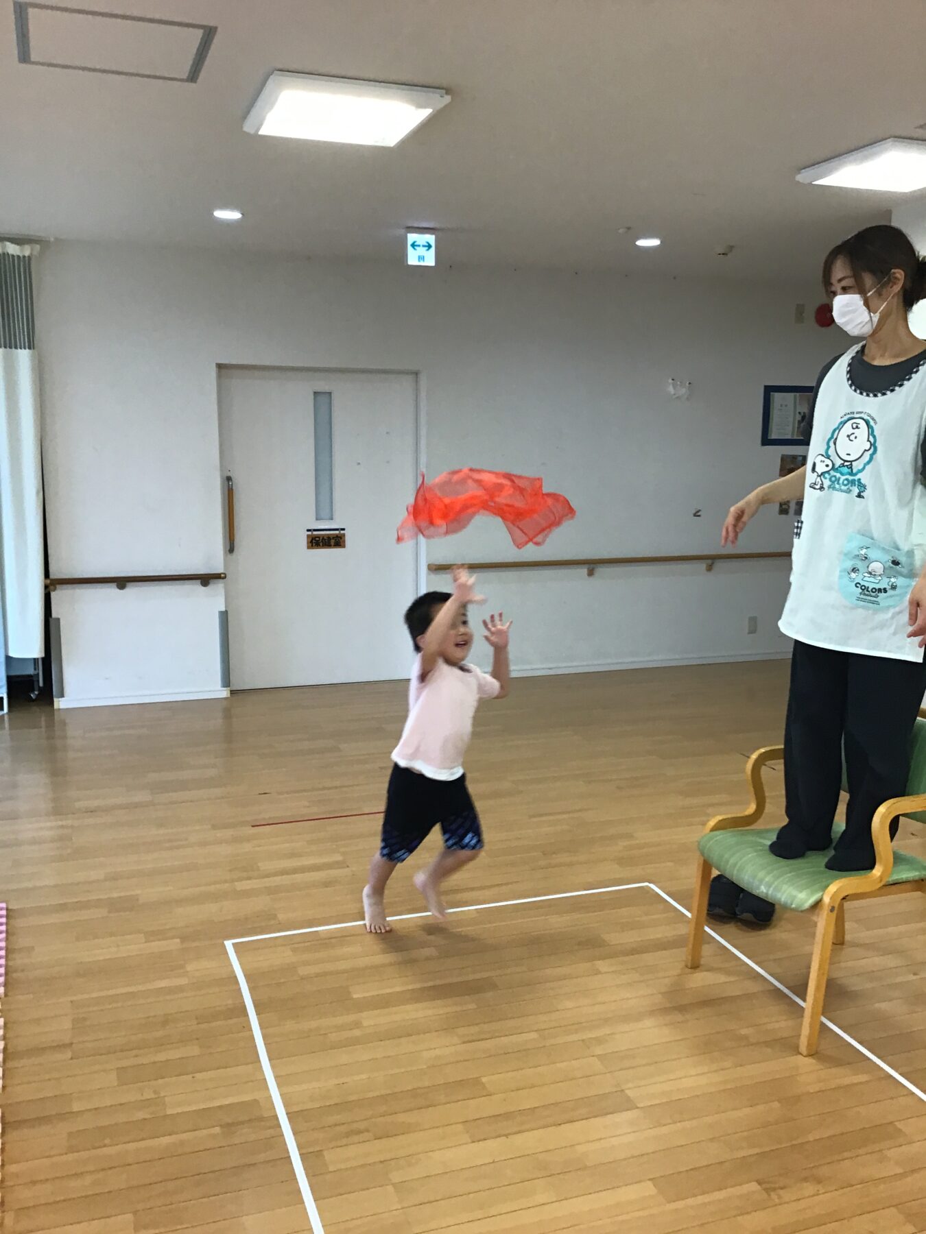 ▼本日のチャレンジタイム3つ目は「スカーフキャッチ」を行いました(^^♪