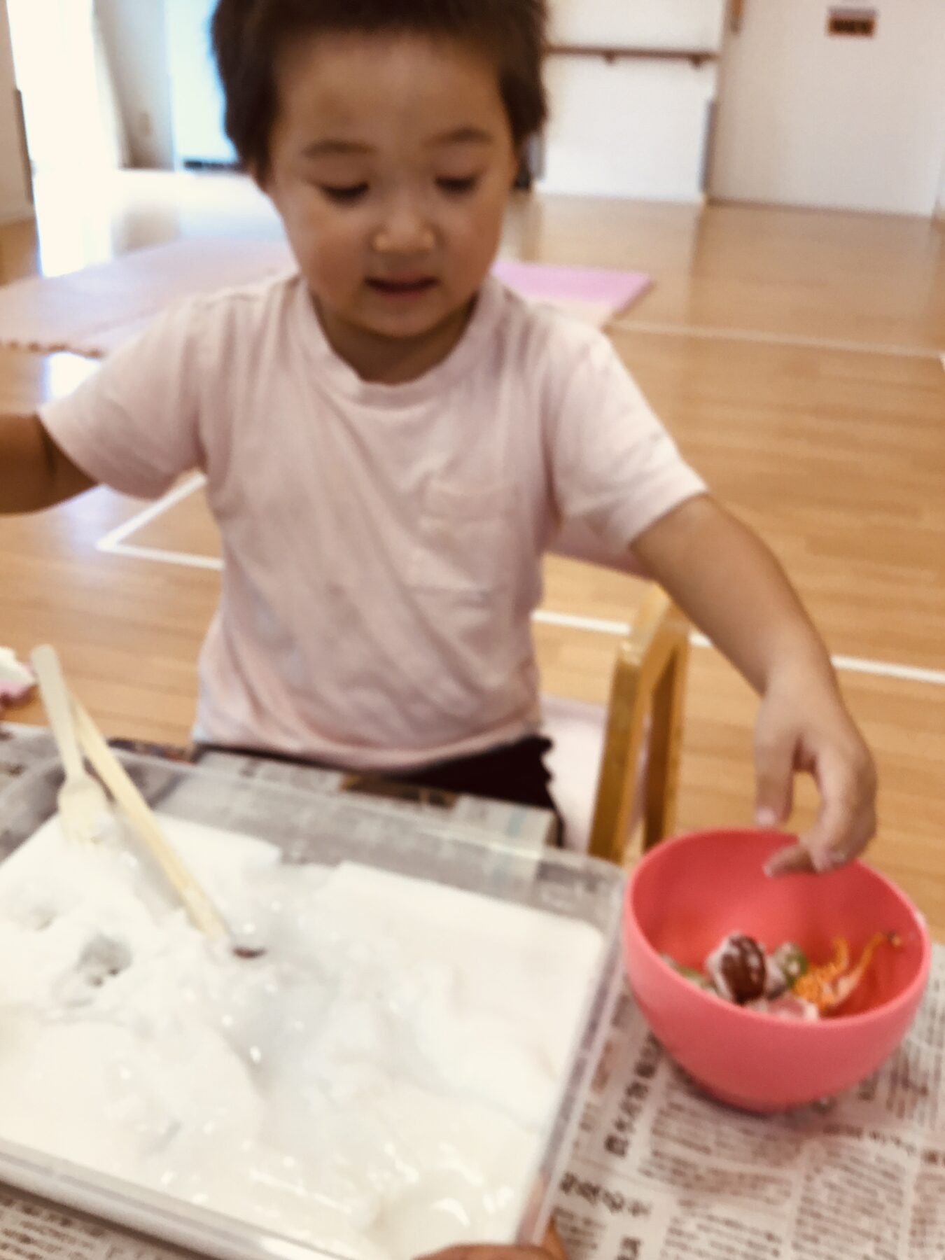 最後は、直接手で触れて、感触遊びを楽しまれていました🌟