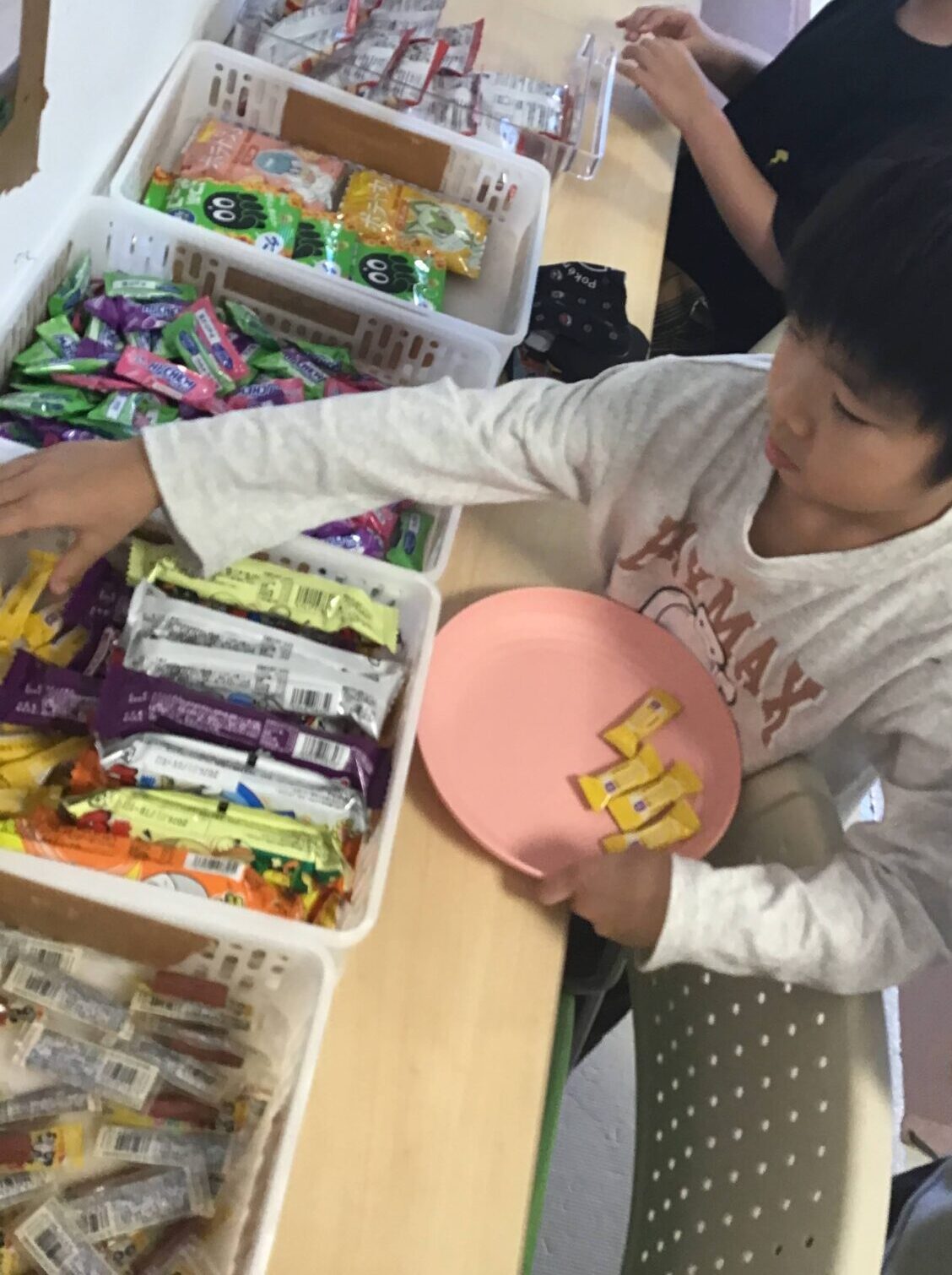 おやつバイキングで好きなお菓子を選ぶことができています😋