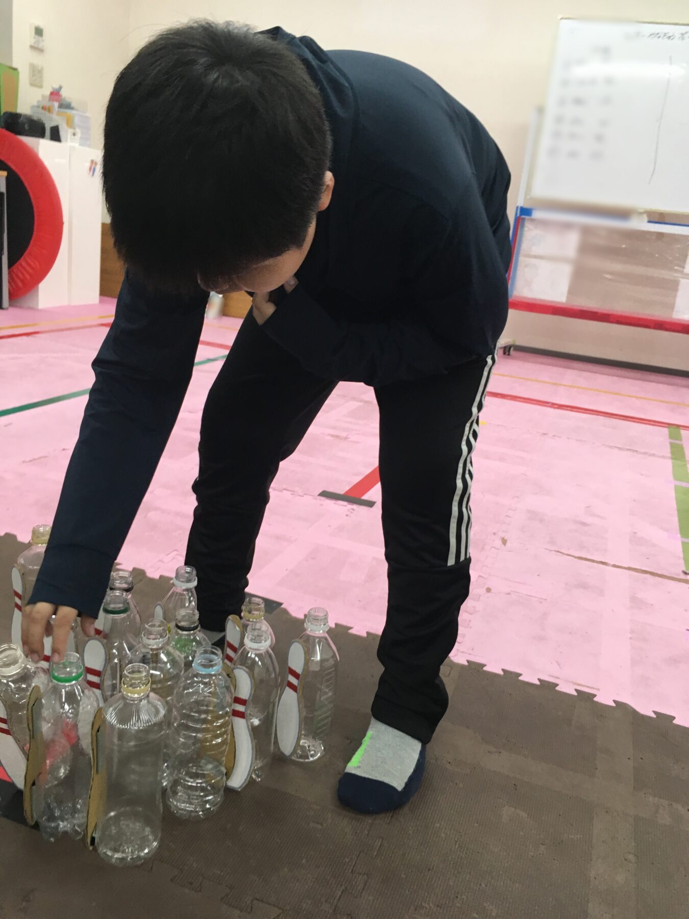 本日は運動遊びとして、「ペットボトルボウリング」に挑戦していただきました!