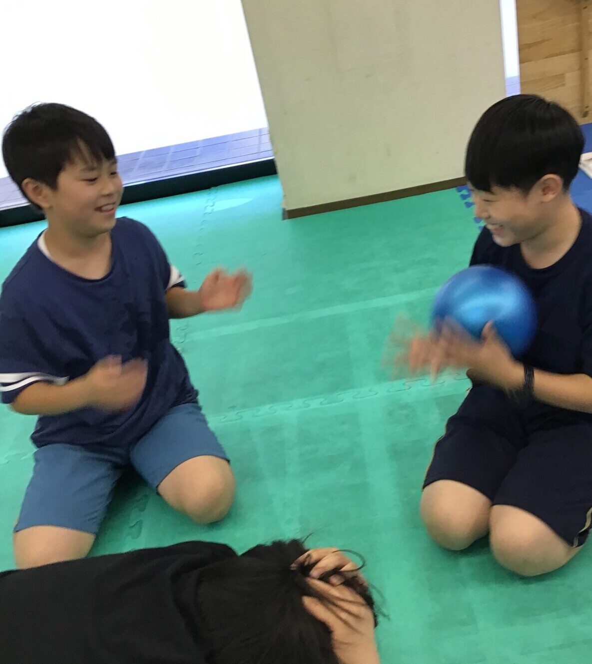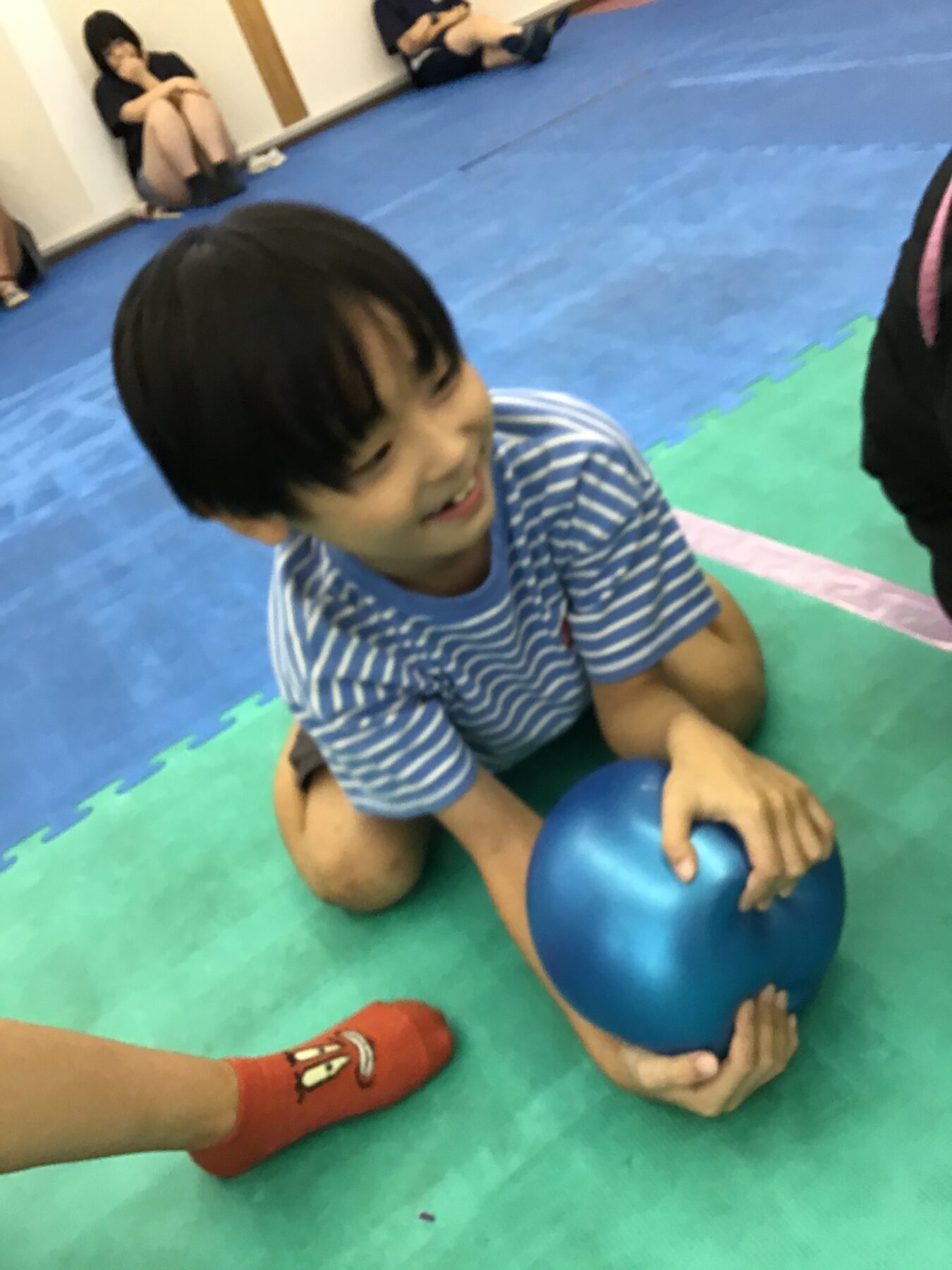 「ドッカン!」と言った際にボールを持っていた人が次の真ん中に座るという内容のゲームです。