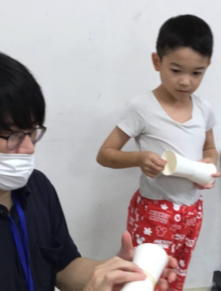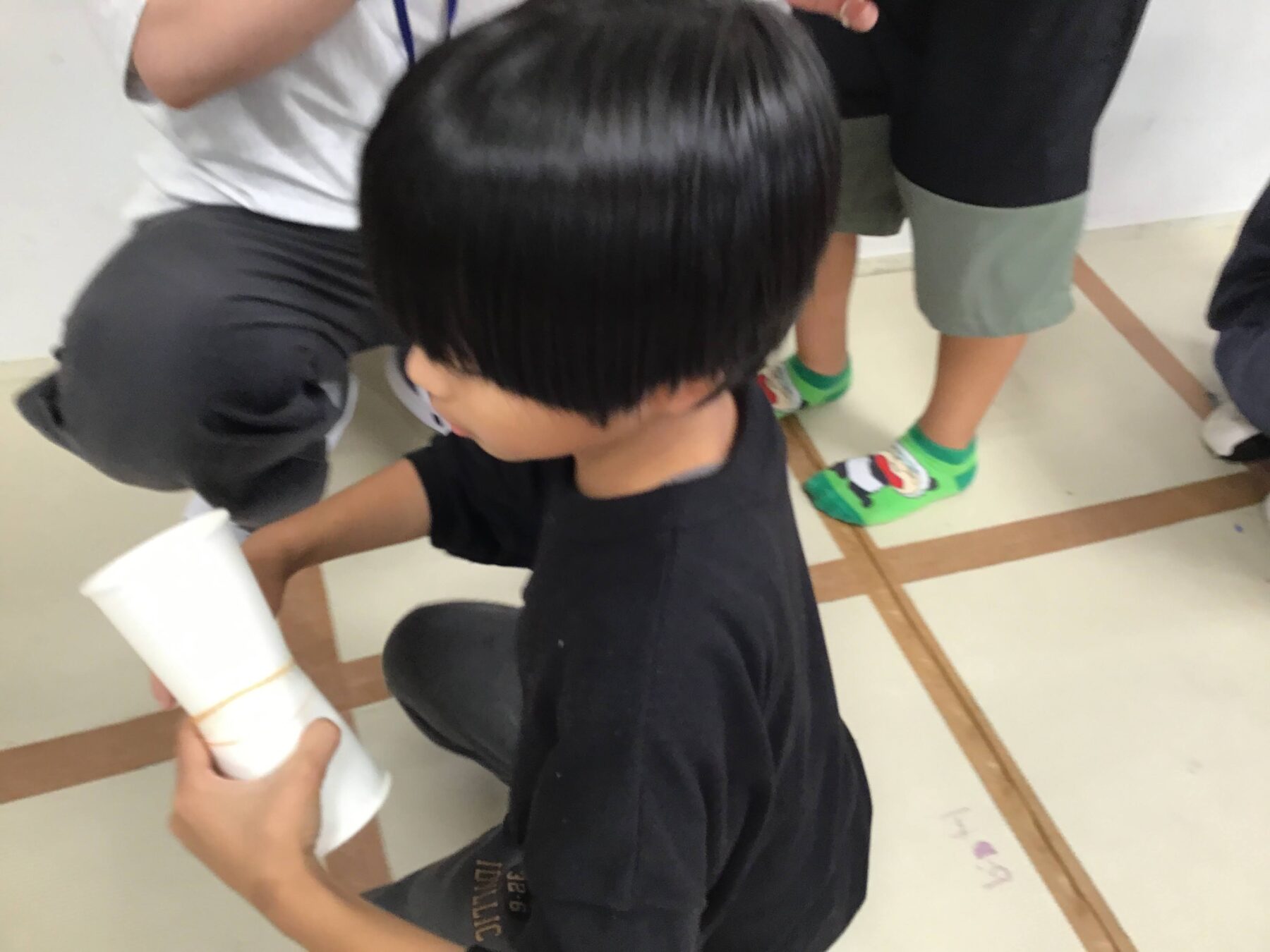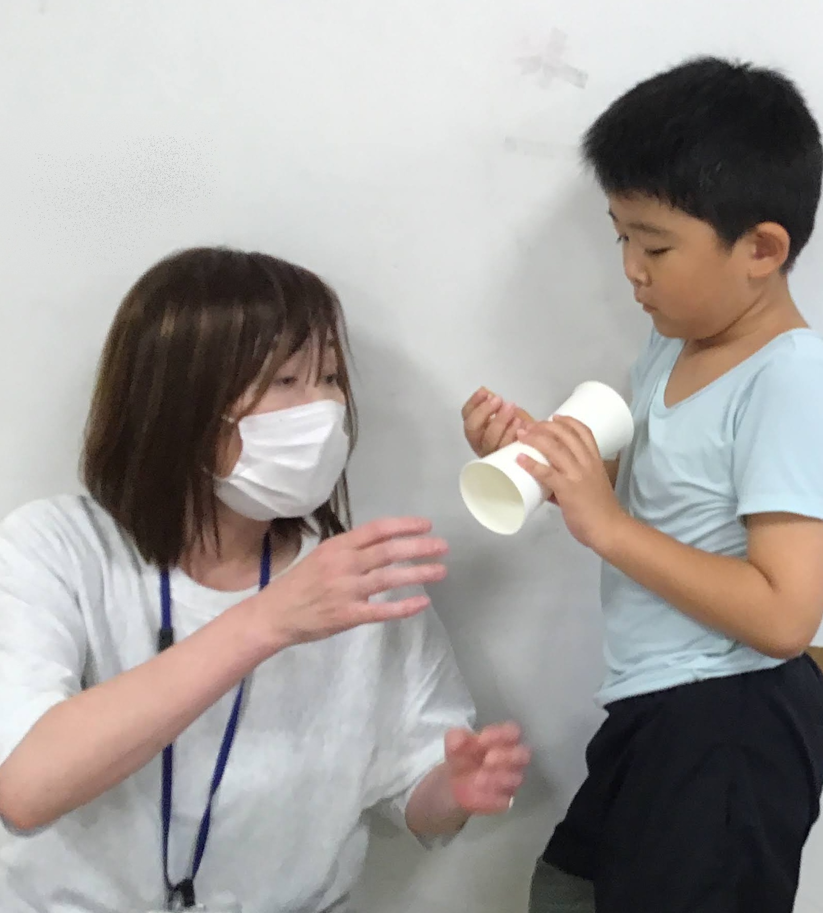 お友だちやサポーターと協力して紙コップ飛行機を飛ばすことができました👍