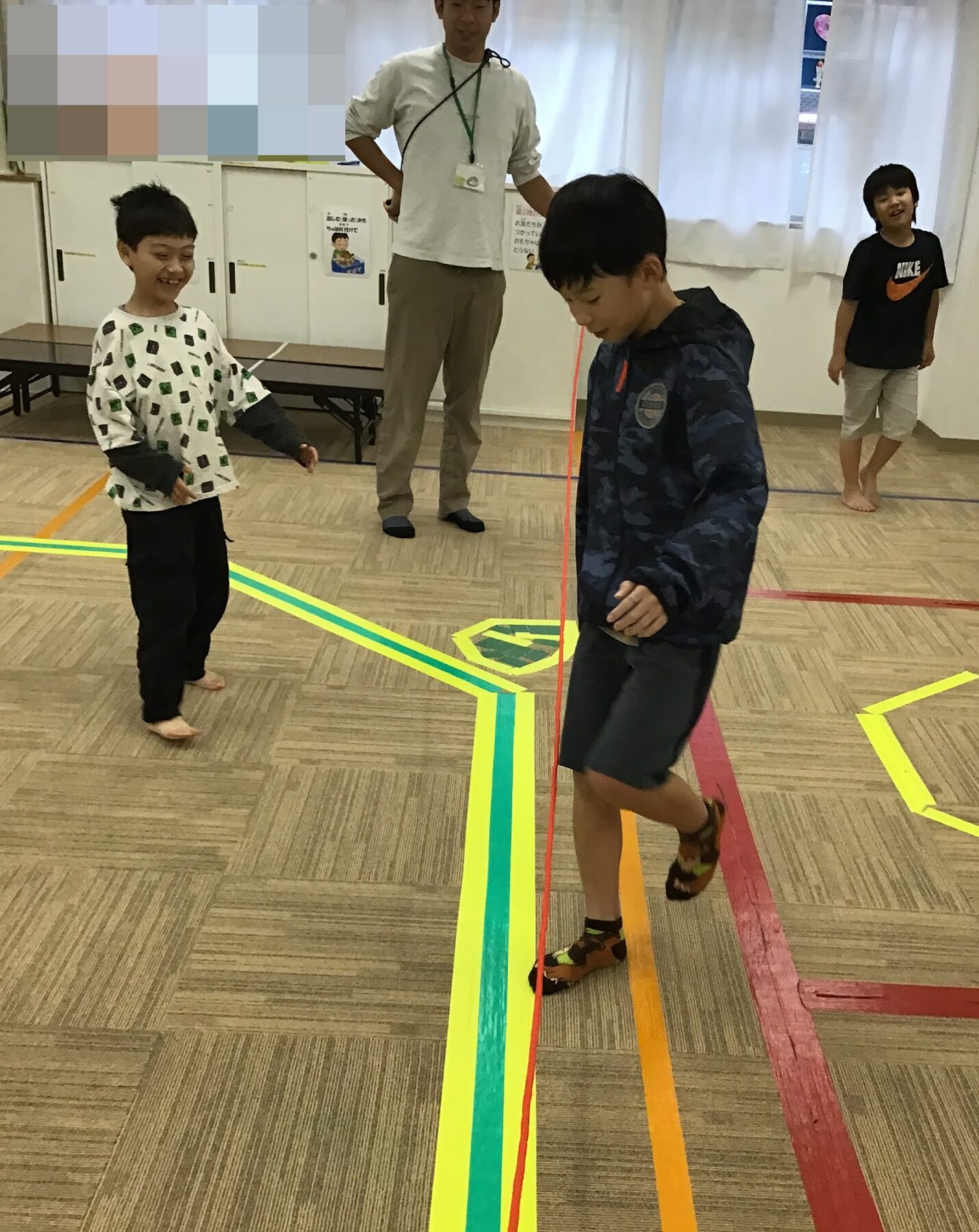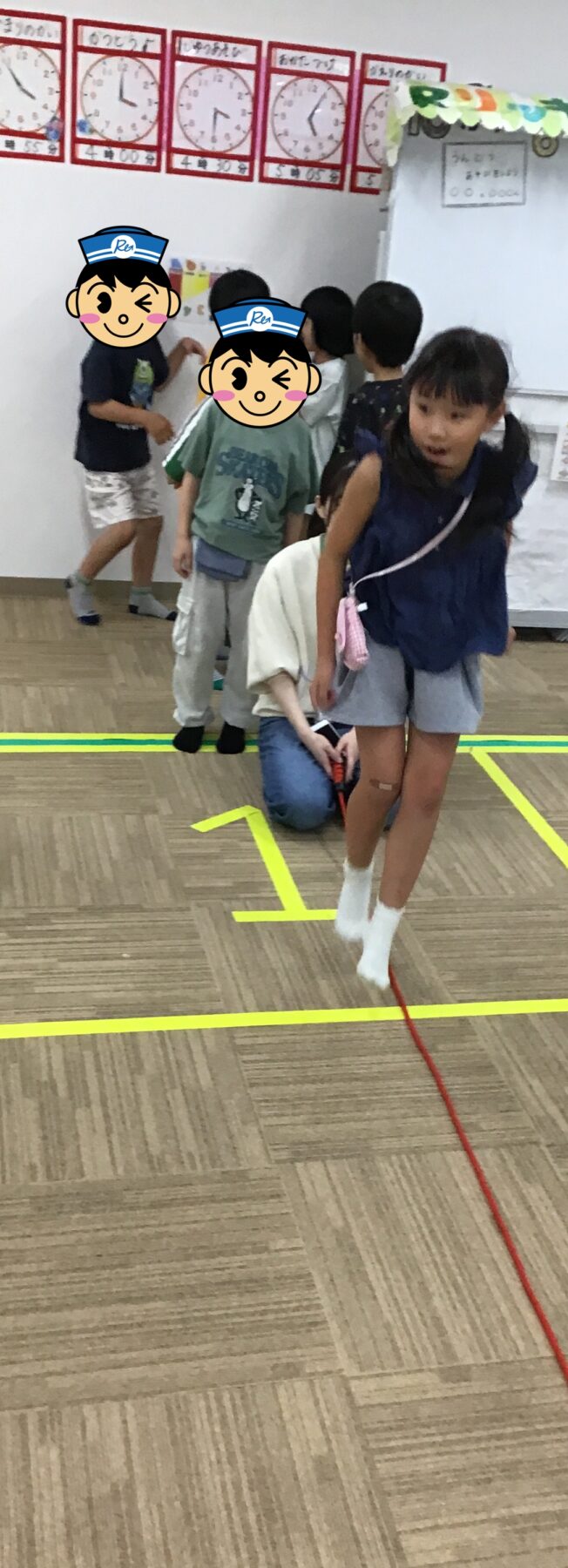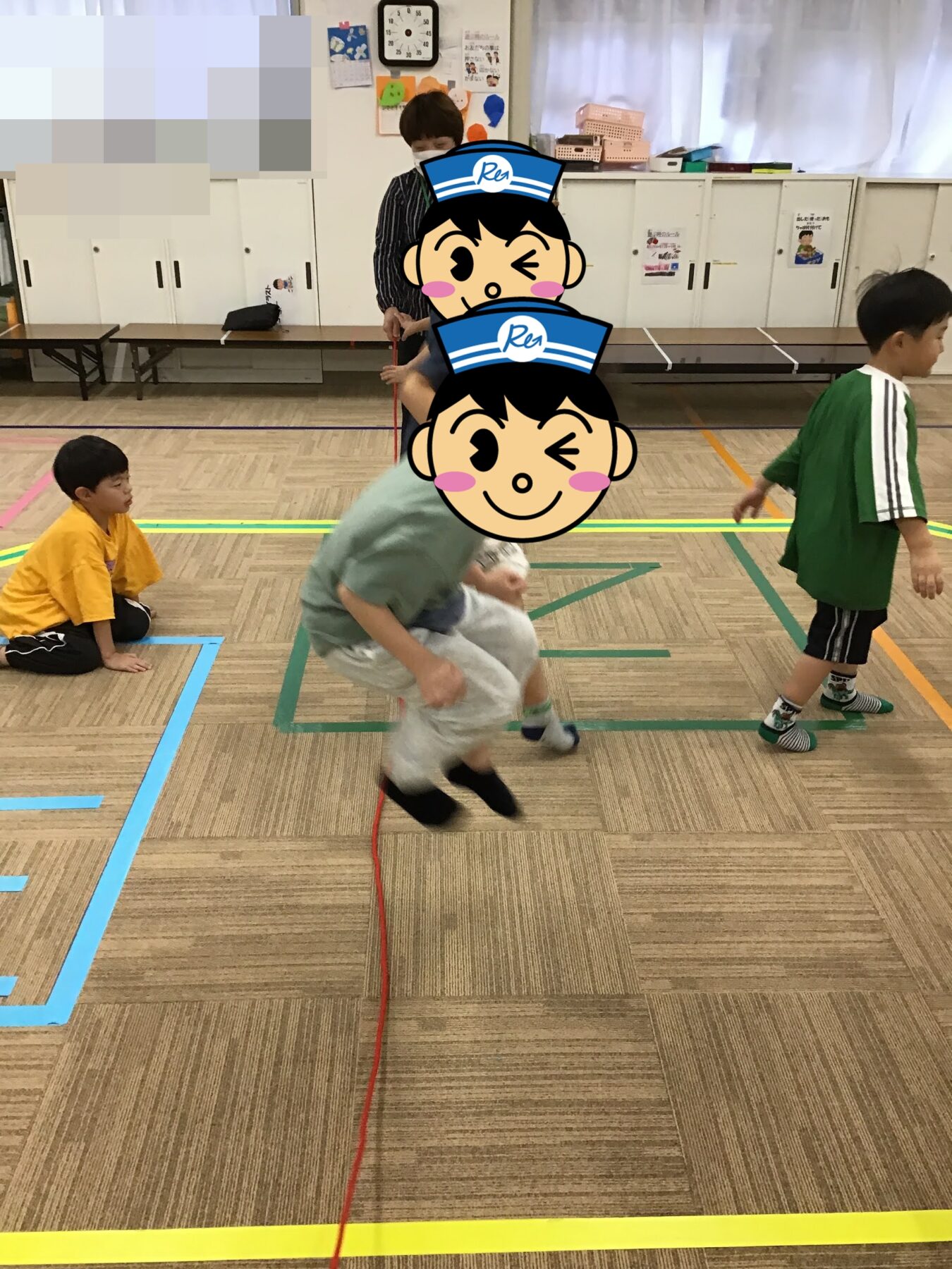 最初に準備体操がてら縄を跳んだり、くぐってもらいました!
