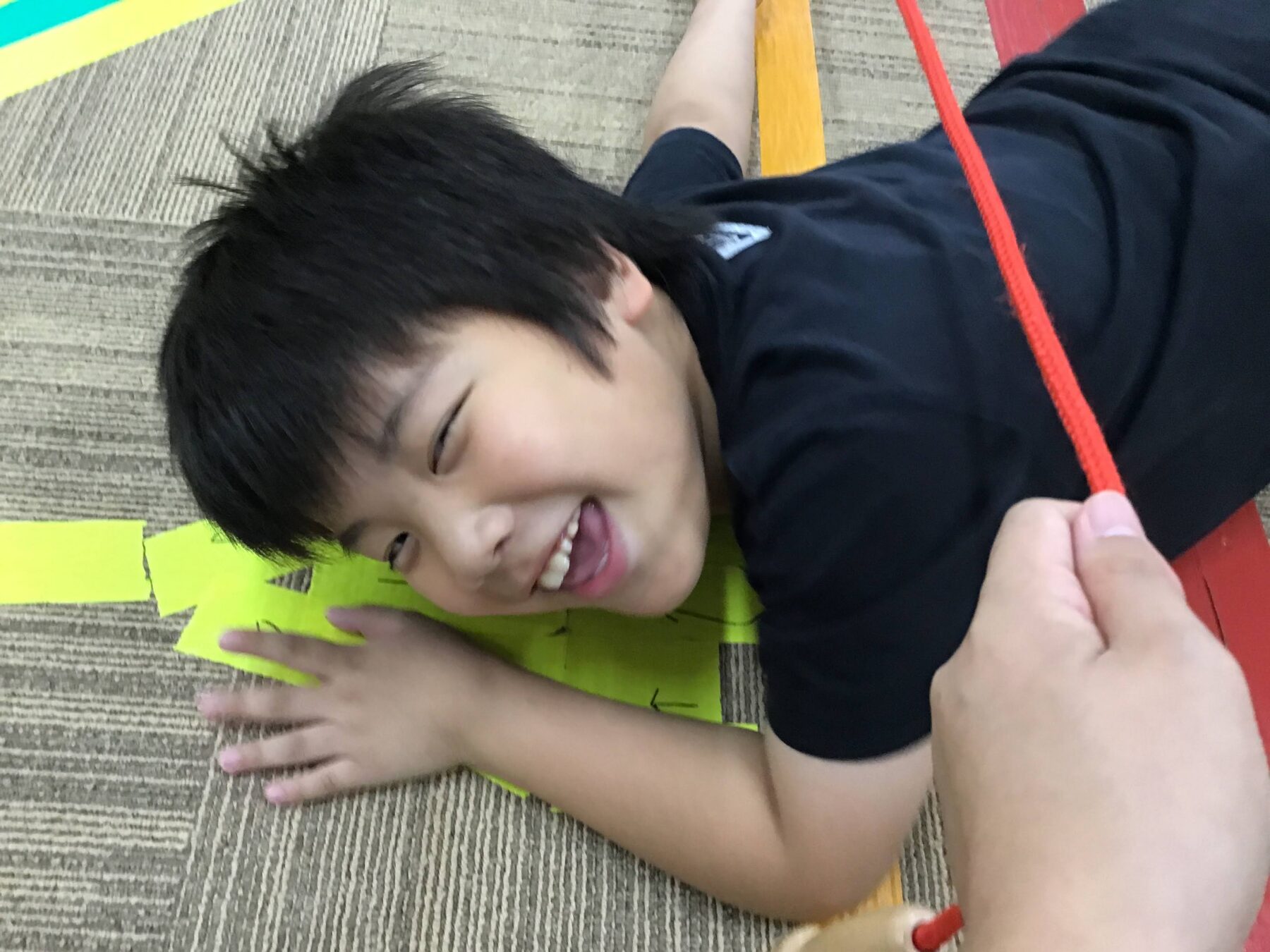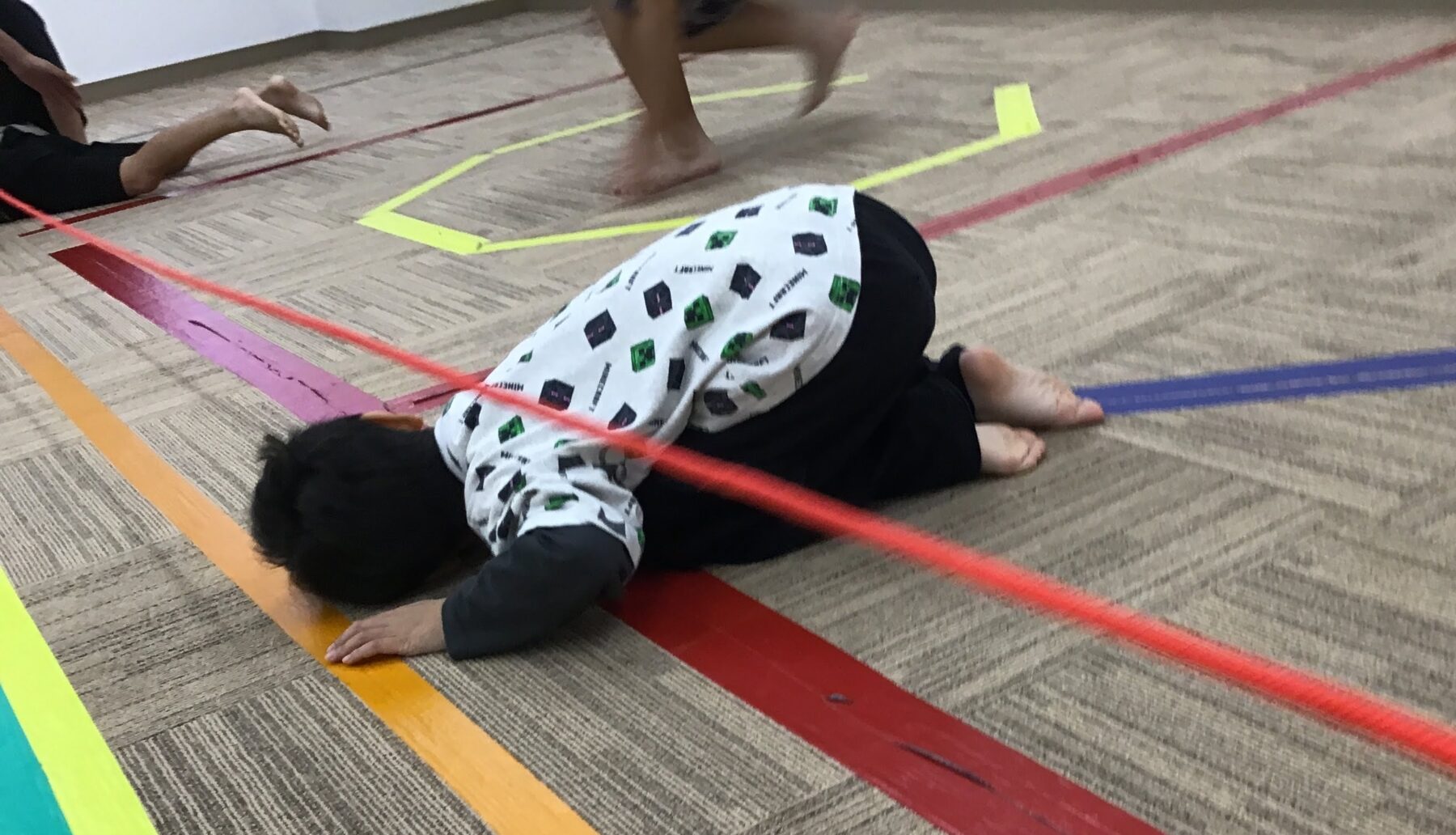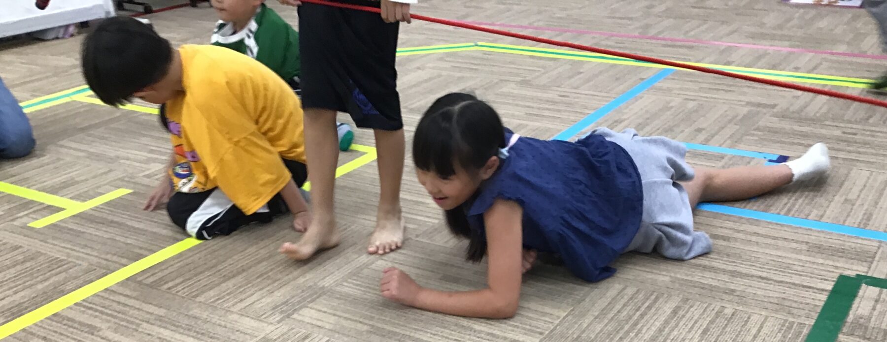 最初に準備体操がてら縄を跳んだり、くぐってもらいました!