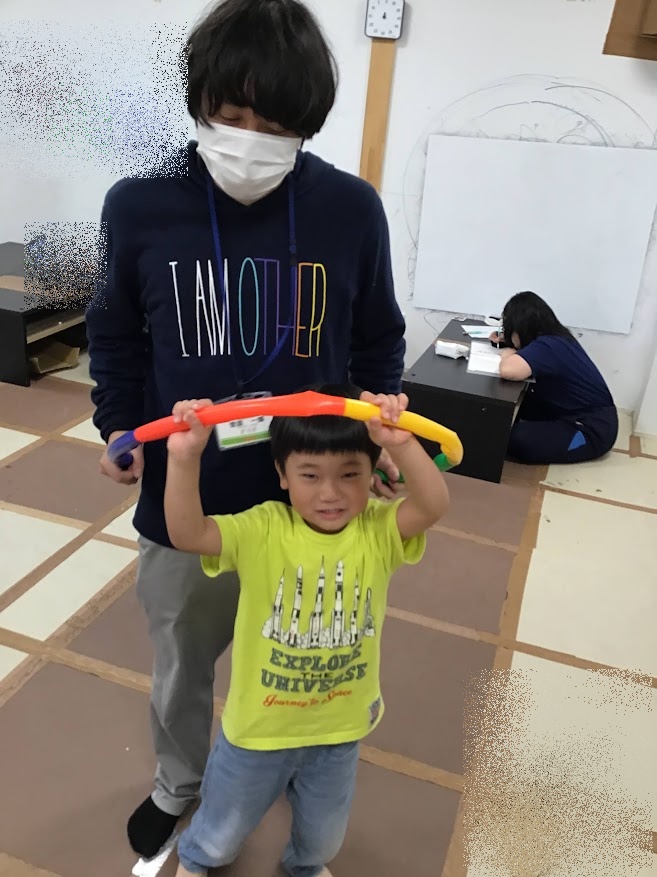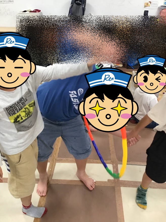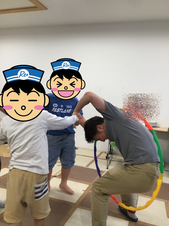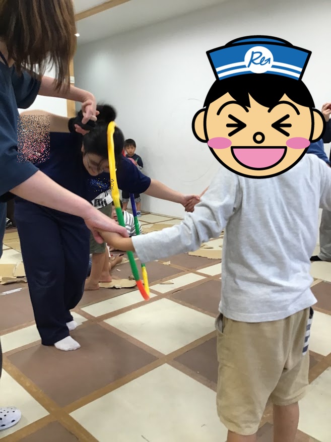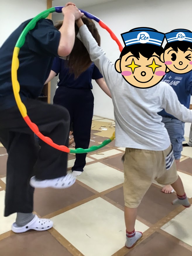 みんなで手を繋いで、フラフープをくぐらせます🎵
