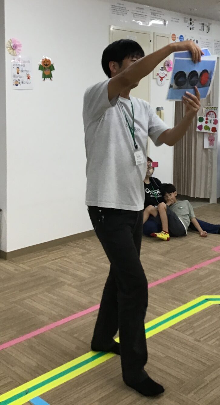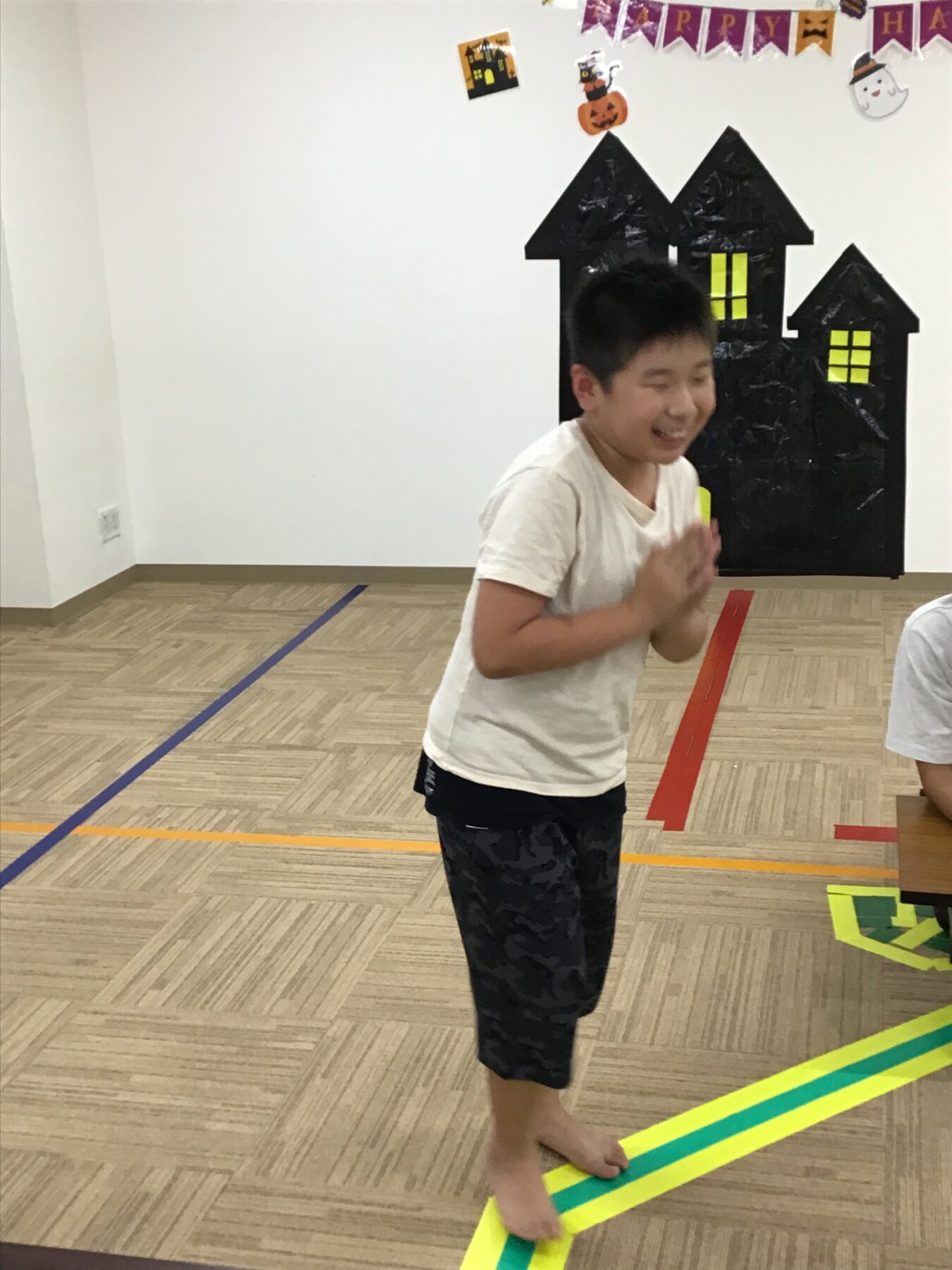黄色!」と言ったら、子どもたちは一歩後ろにジャンプします。