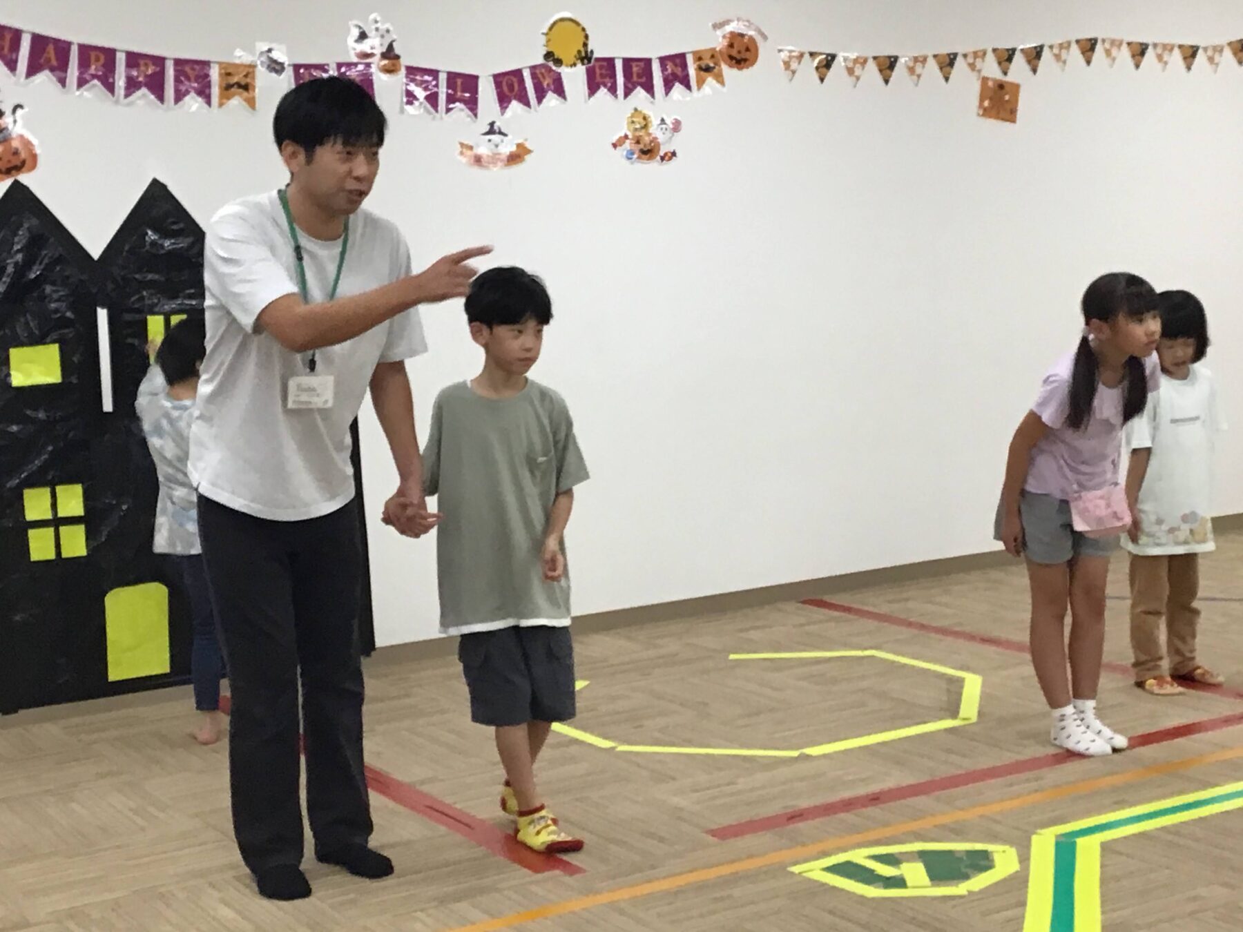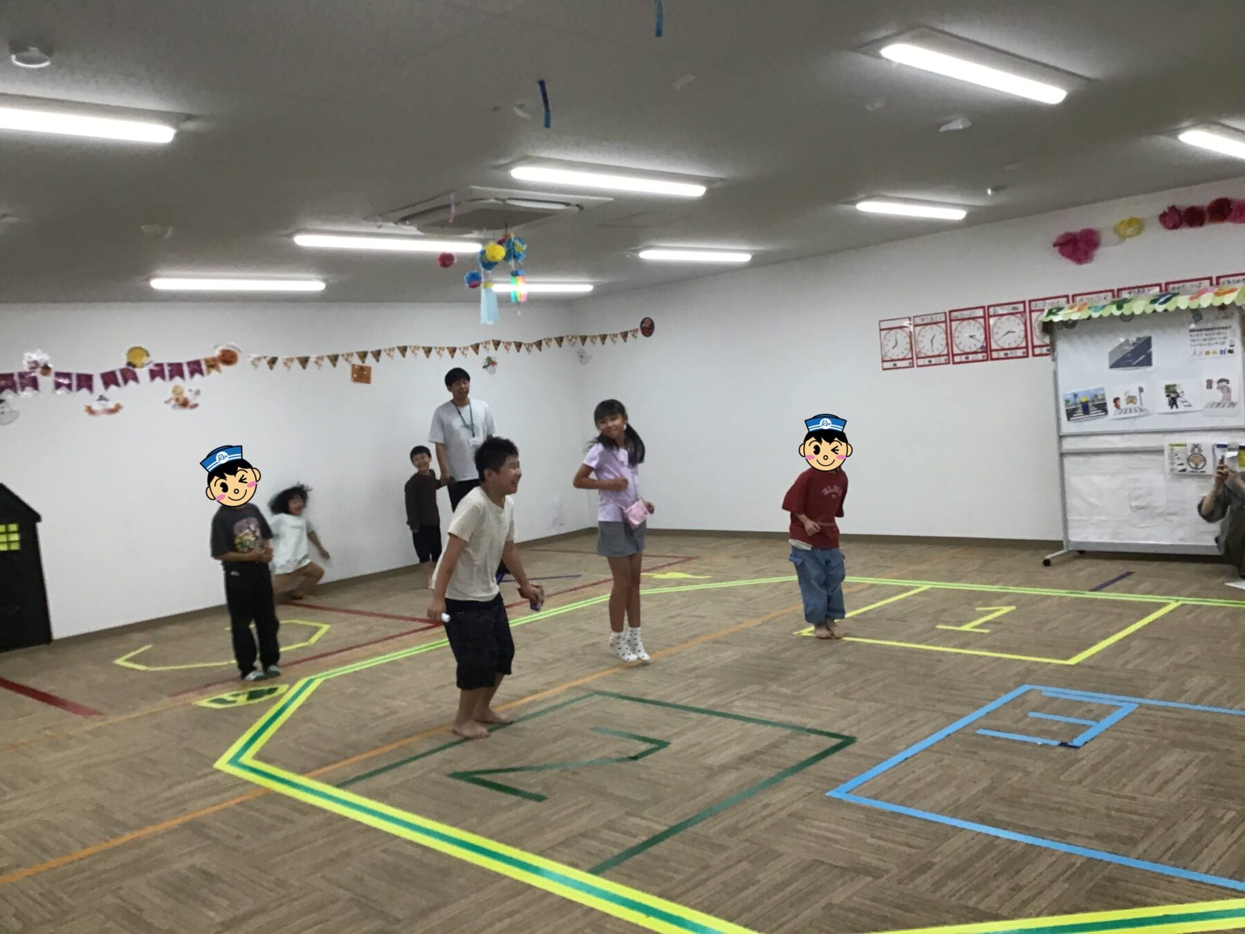 青!」と言ったら、子どもたちは一歩前にジャンプします。