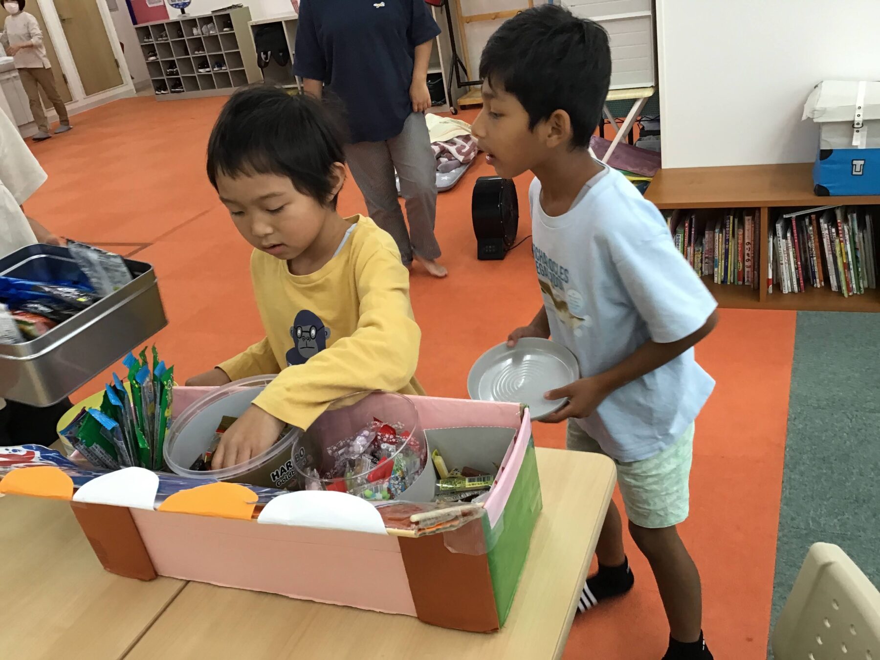 本日は「カスタネットで遊ぼう」としまして、SDGS★廃材・牛乳パックとペットボトルの蓋のカスタネット作りを楽しみました。