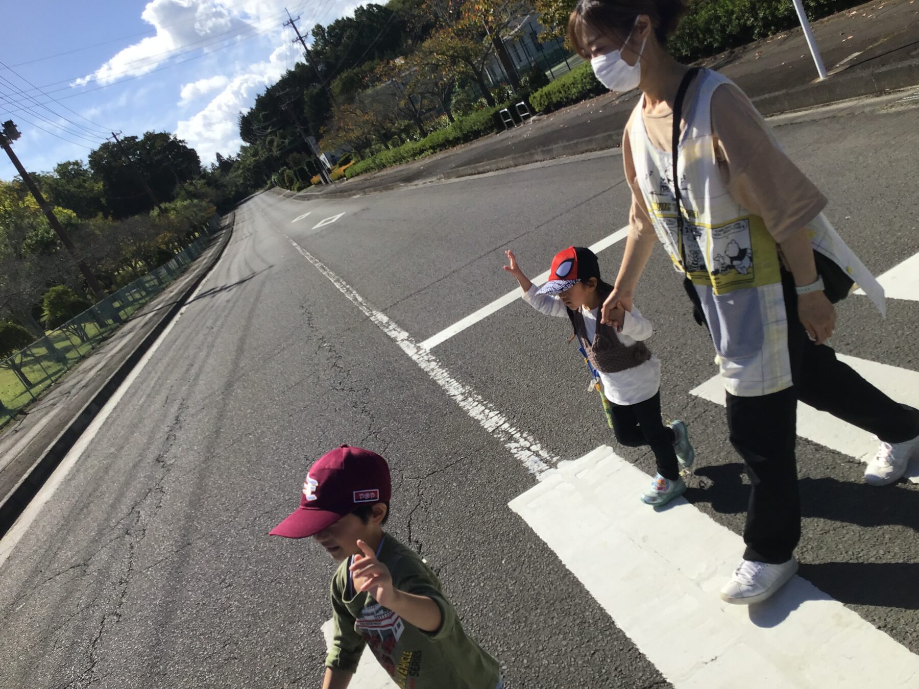 手を挙げてばっちりわたってくださいました(^^♪