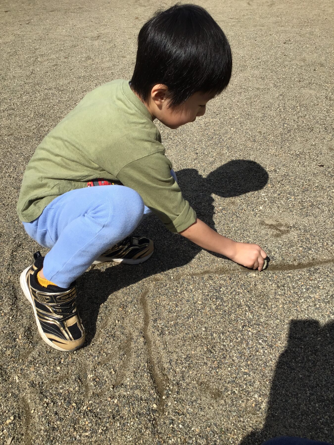 池の方にいったり、砂遊びをしたりと