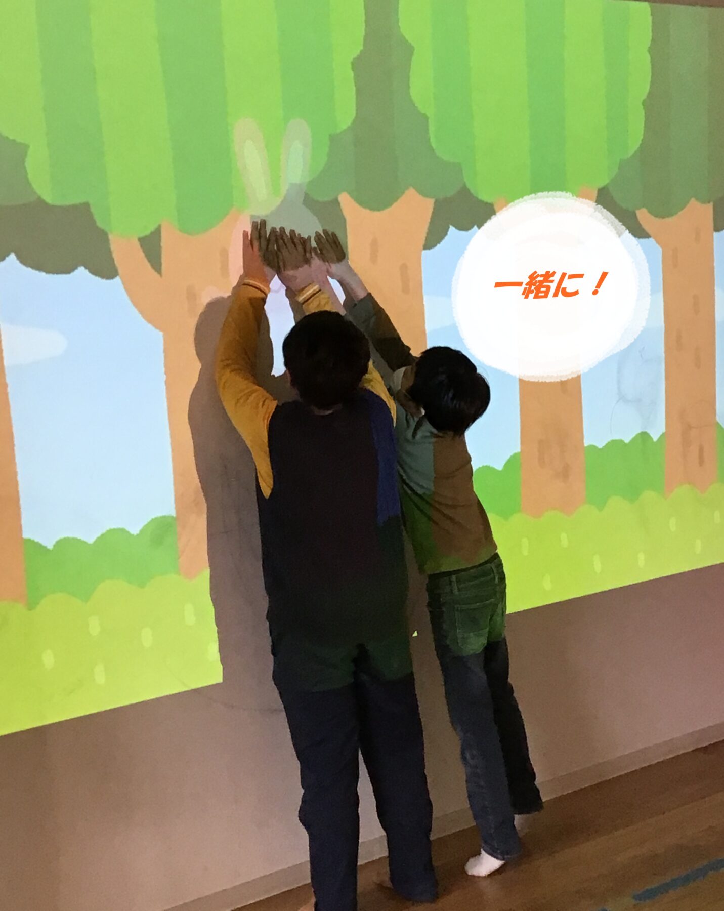 壁に映し出されたキャラクターにタッチしていくゲームです。