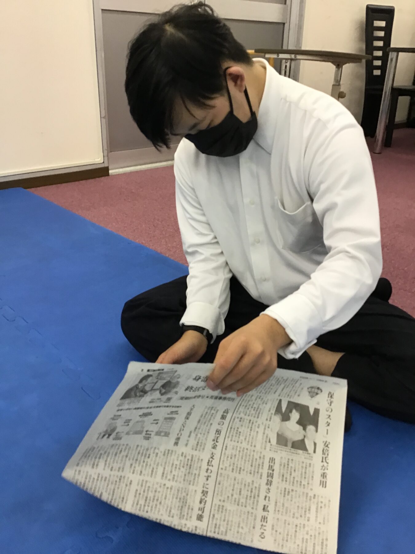 まずは、新聞紙をどこまで小さく折りたためるかチャレンジしました。