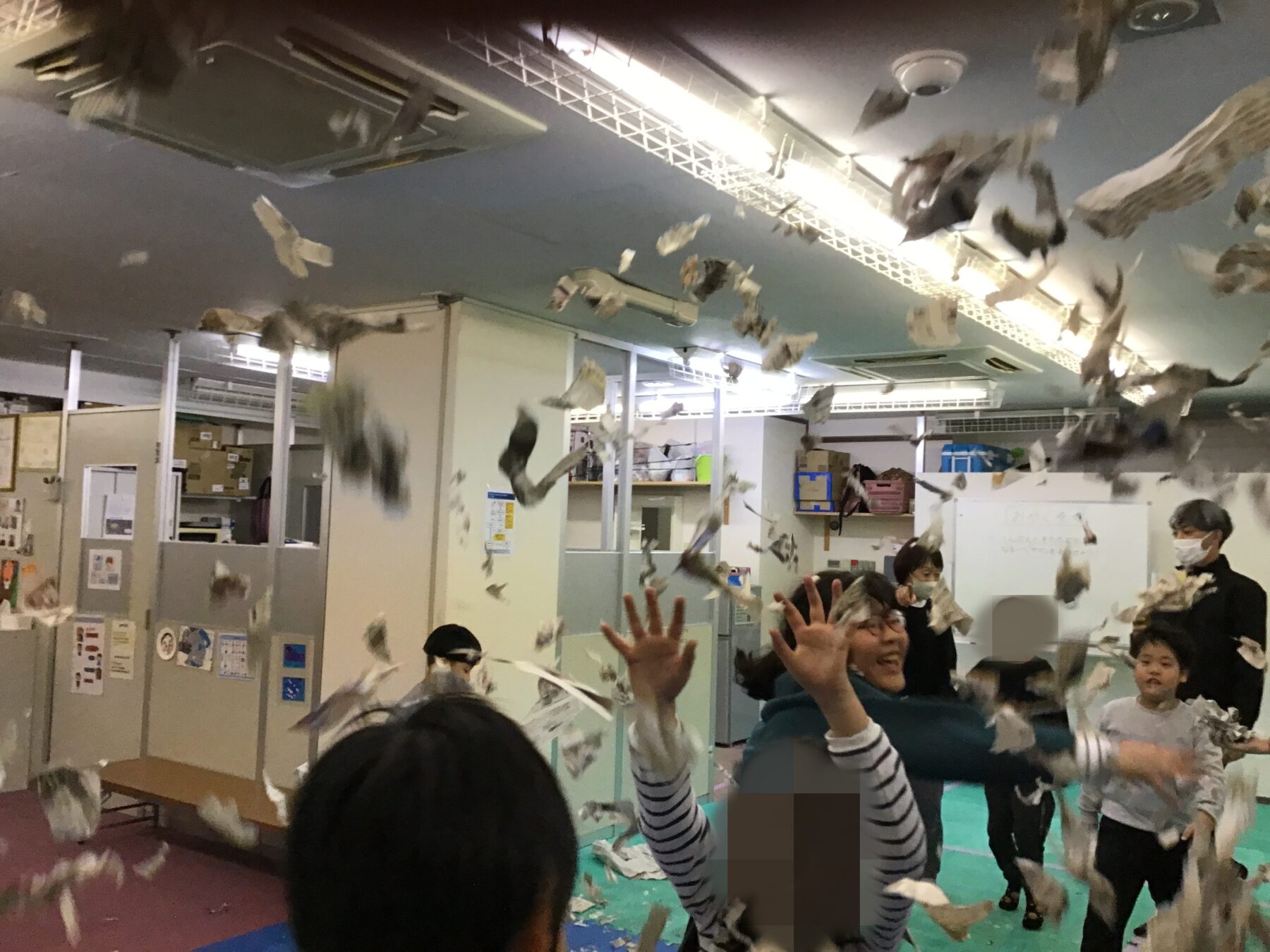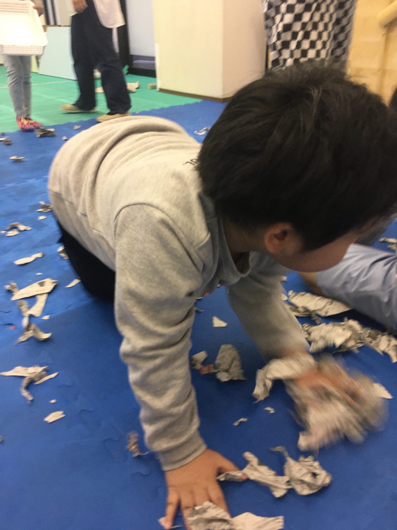 最後は散らばった新聞紙を、みんなで協力してお片付け。