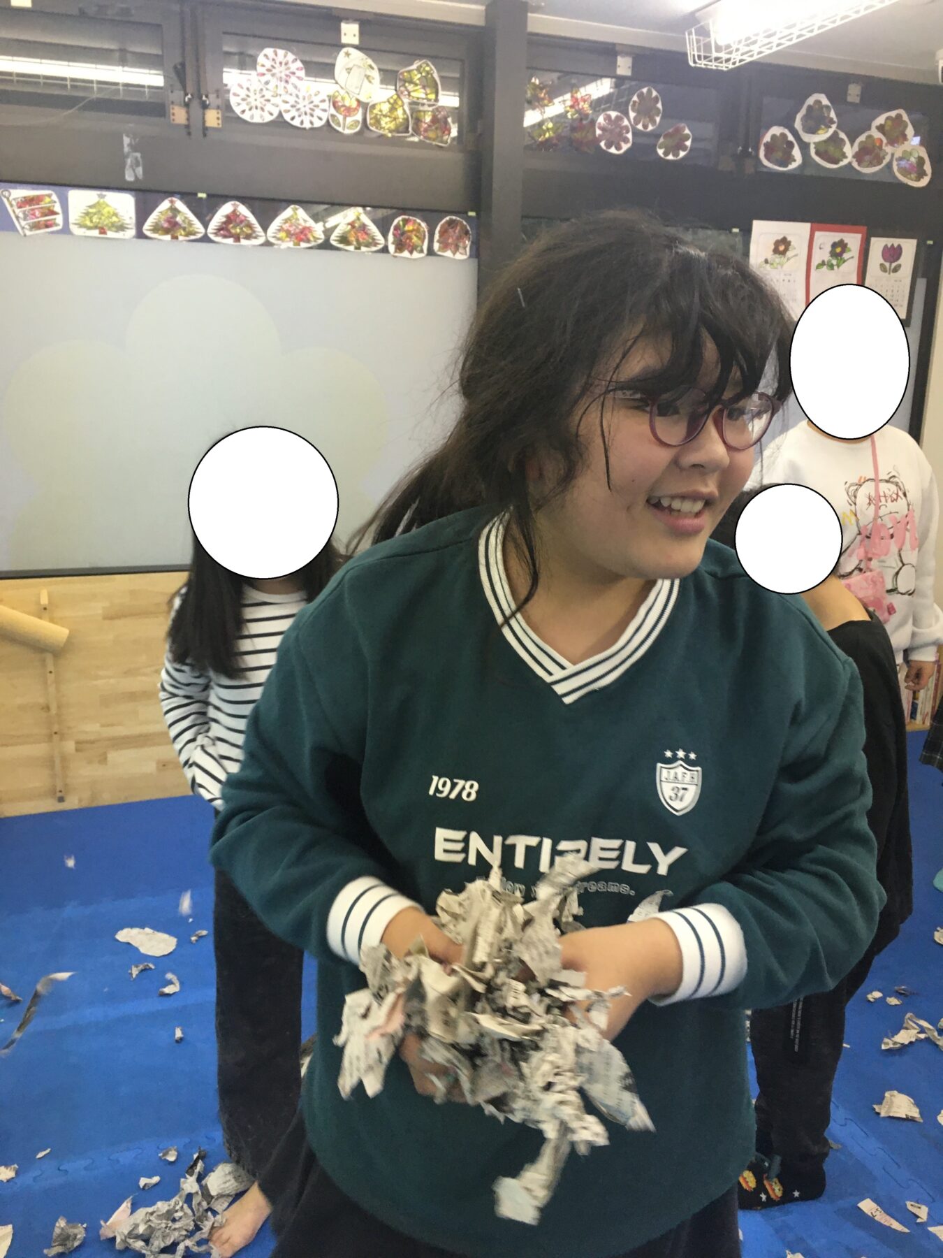 今日の【感覚・認知】の活動で、「新聞紙あそび」をおこないました。