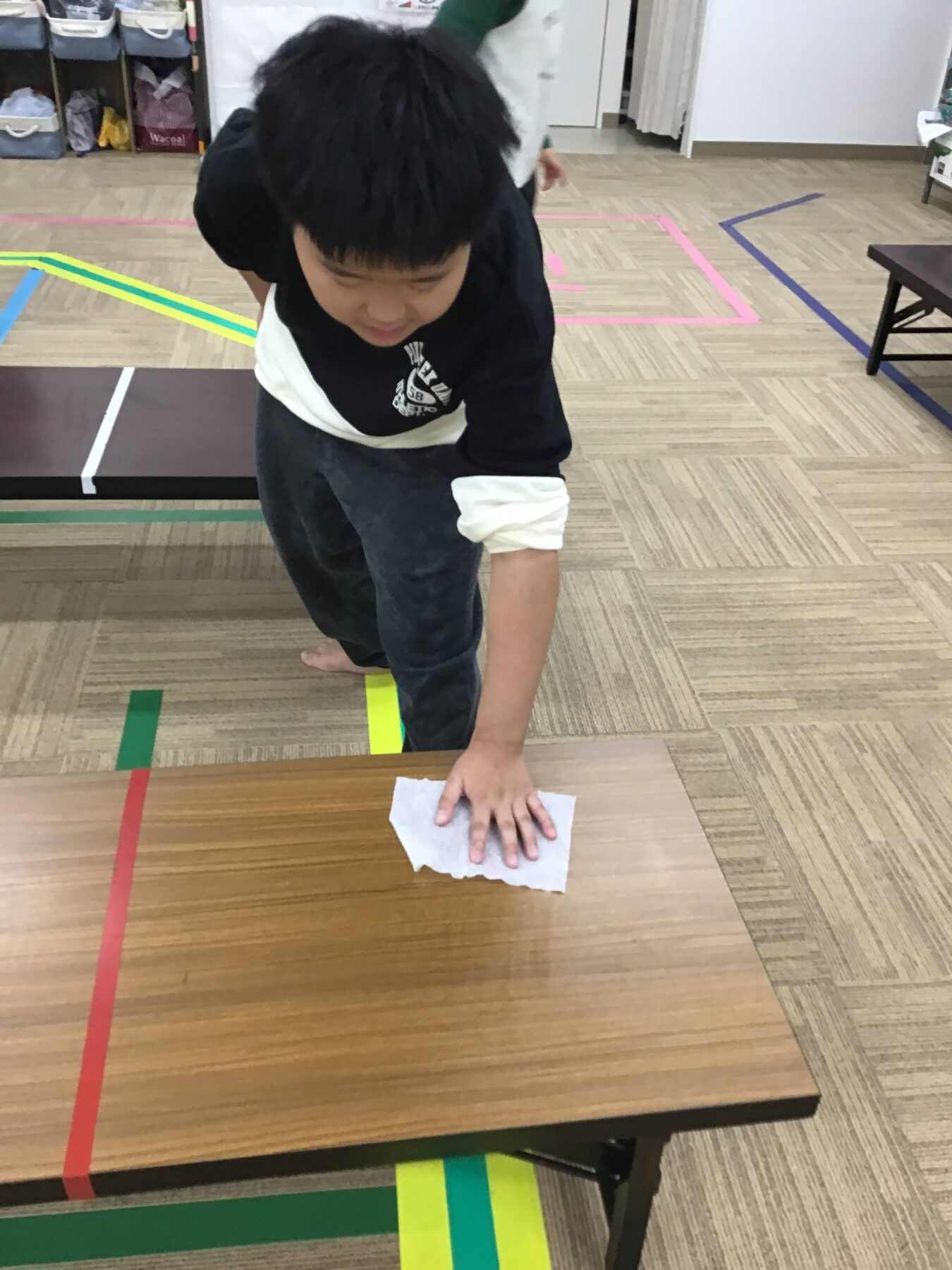 テーブルを拭くお手伝いをしてくれたお友だち