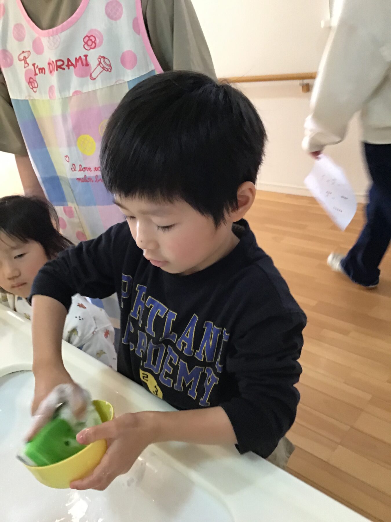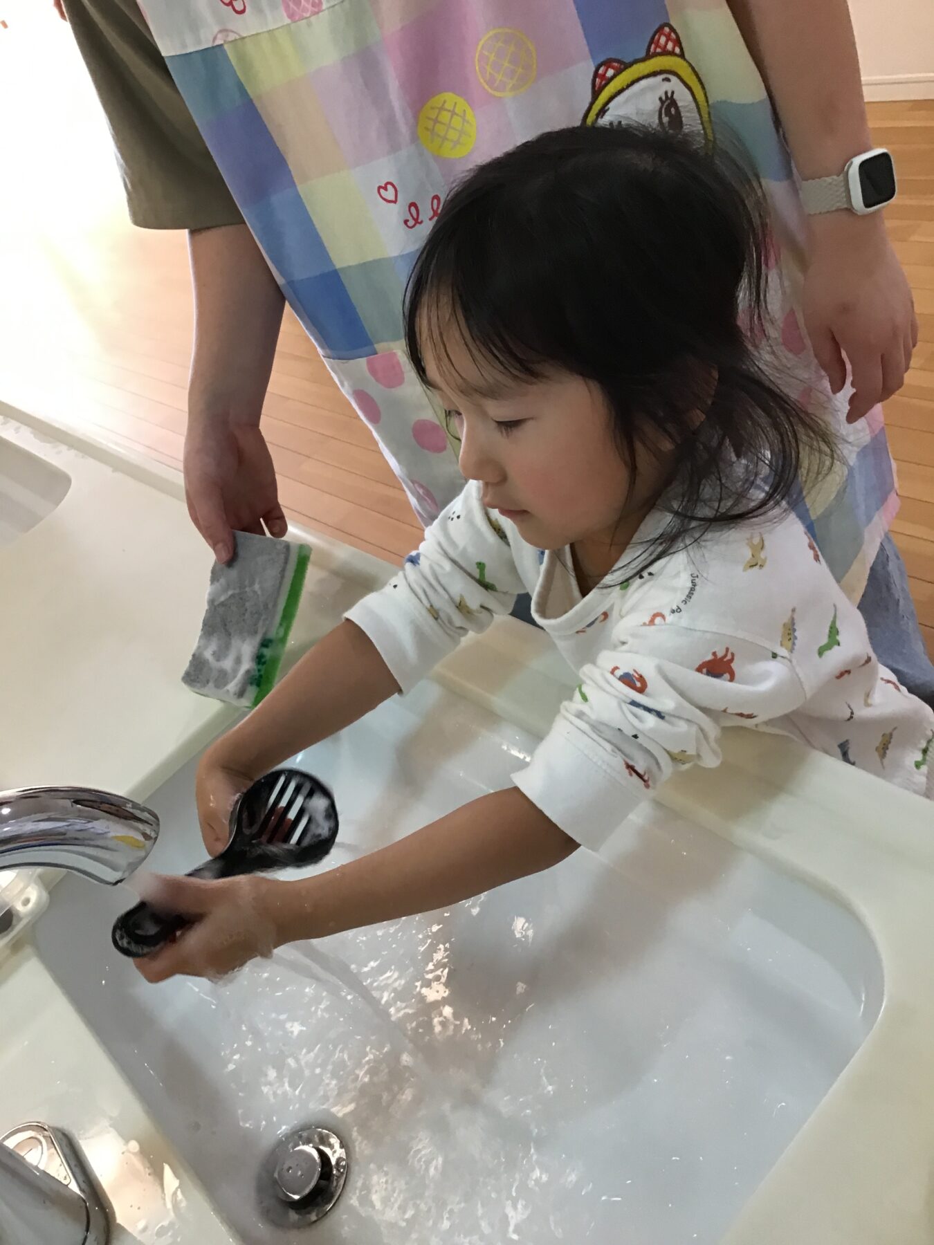 ▼焼き上がる間、使った食器を洗っていただきました!!
