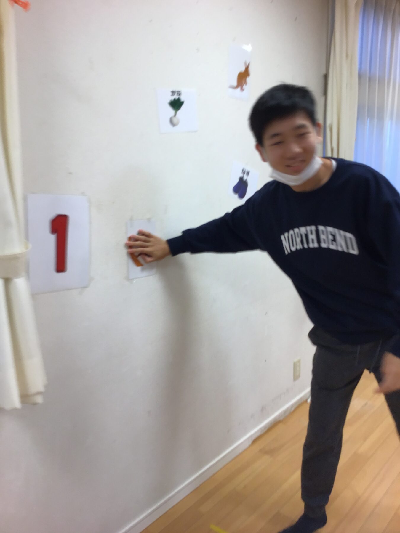 お題に沿って壁に貼っているカードをタッチするゲームです