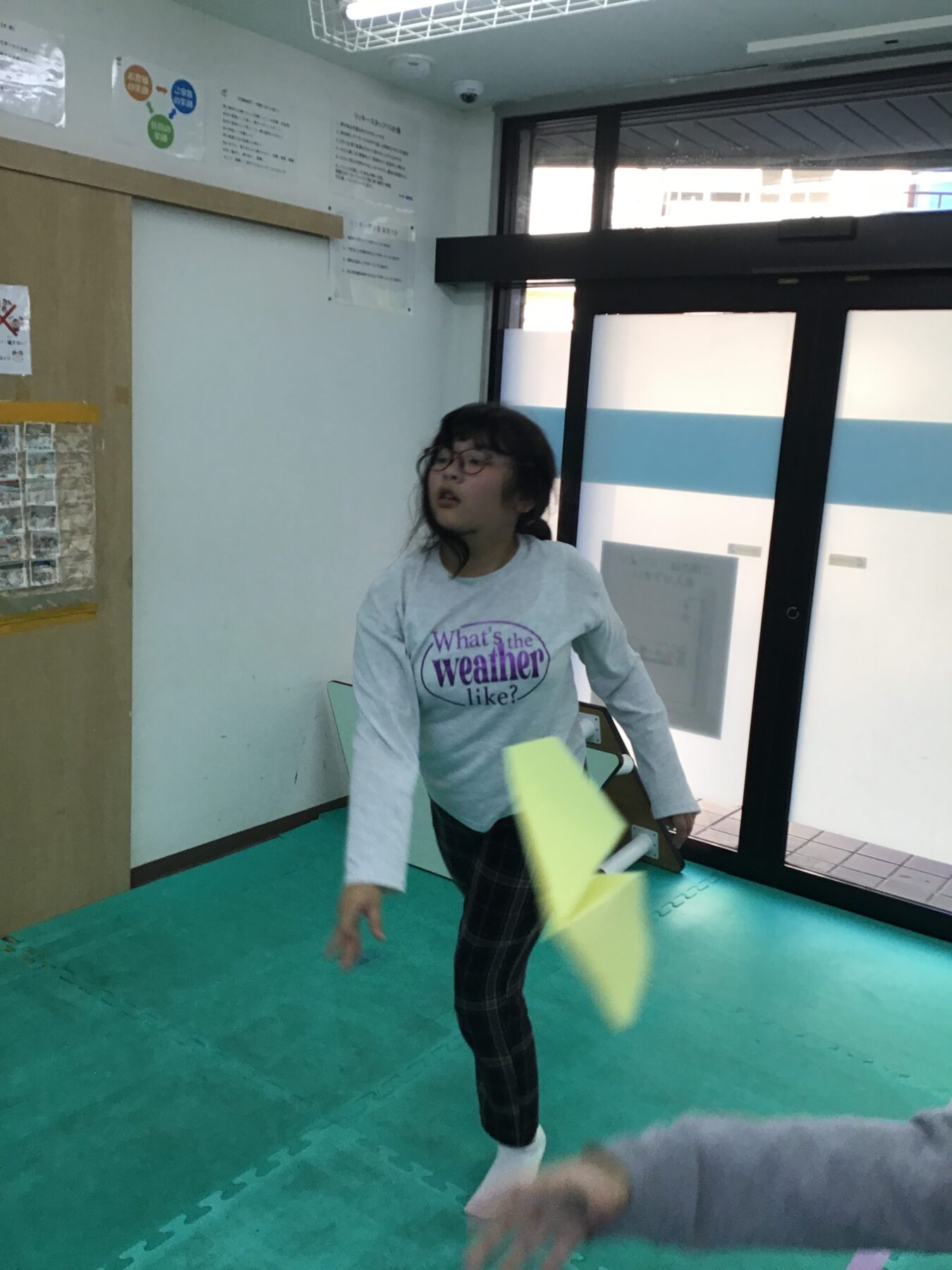 作った紙ヒコーキに、「何か描いていい?」「絵を塗ってもいい?」と聞いてきたお友達がいたので、