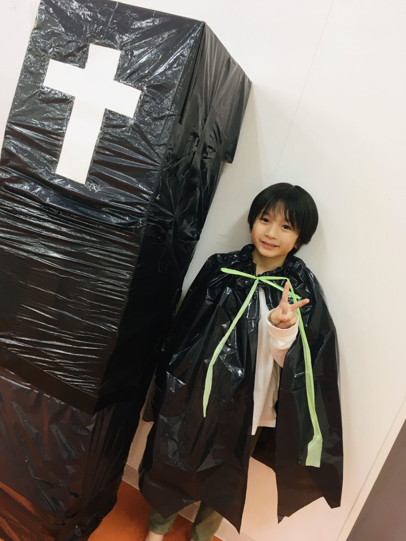 出来上がったマントはハロウィンパーティで使用します🦇うまく出来たでしょ(^^♪