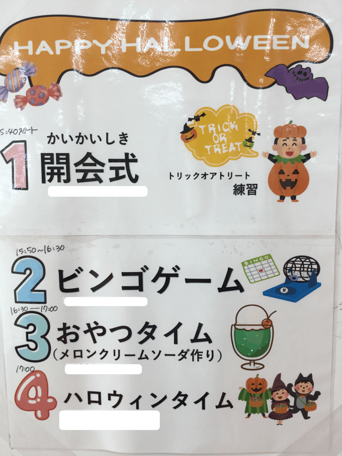 ハロウィンパーティのスケジュールになります👀
