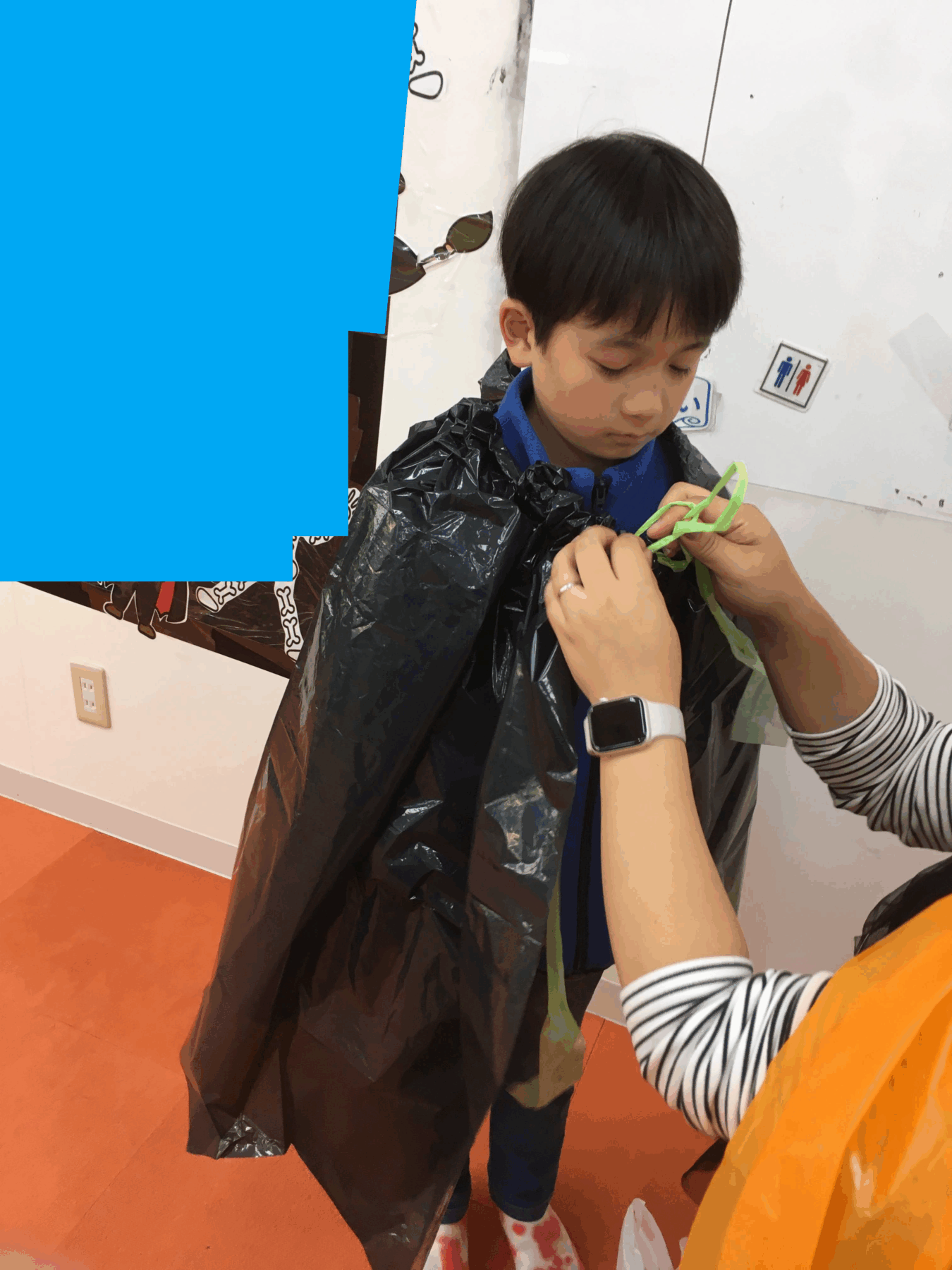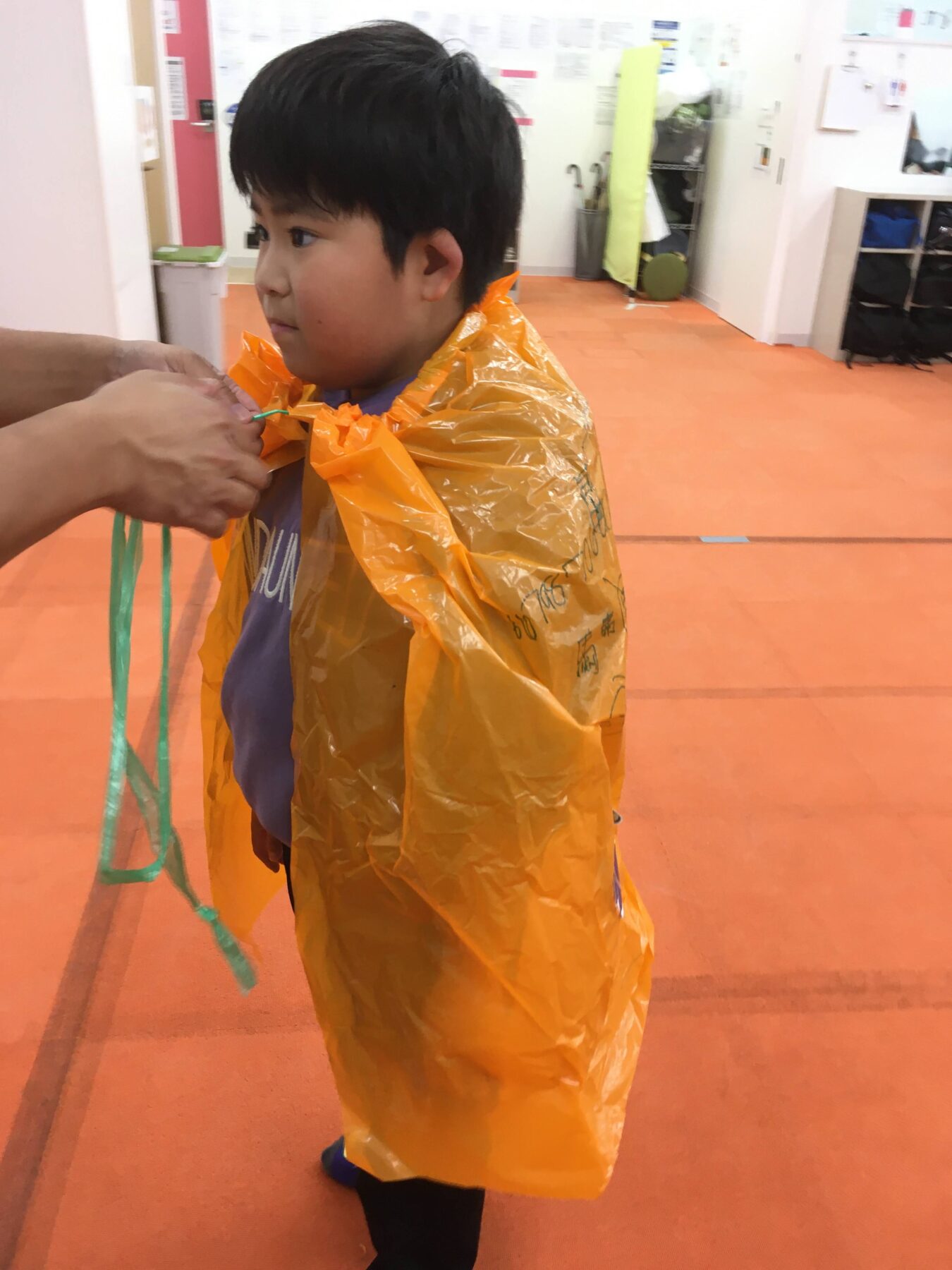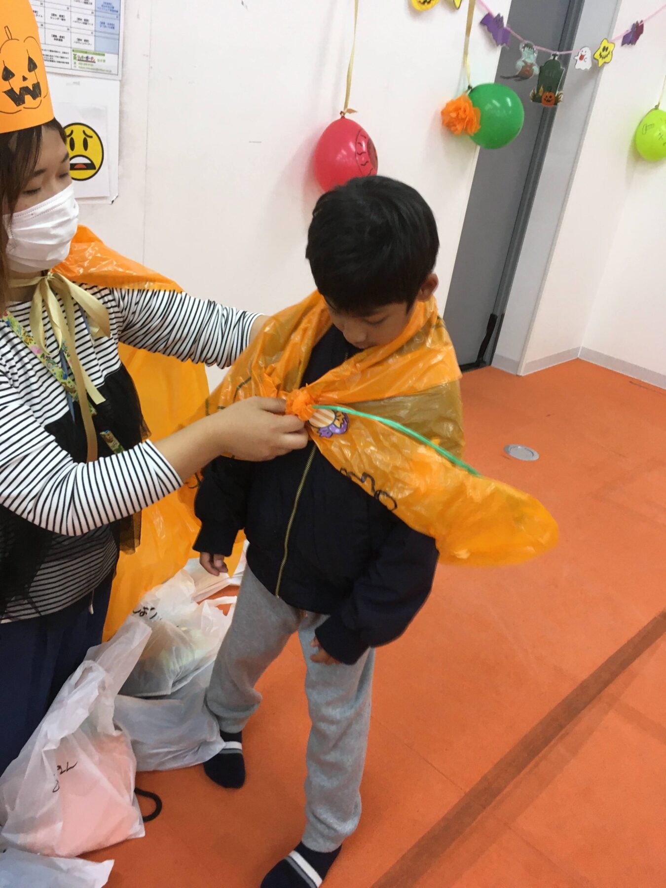 みんなで作ったマントをつけてみよう!