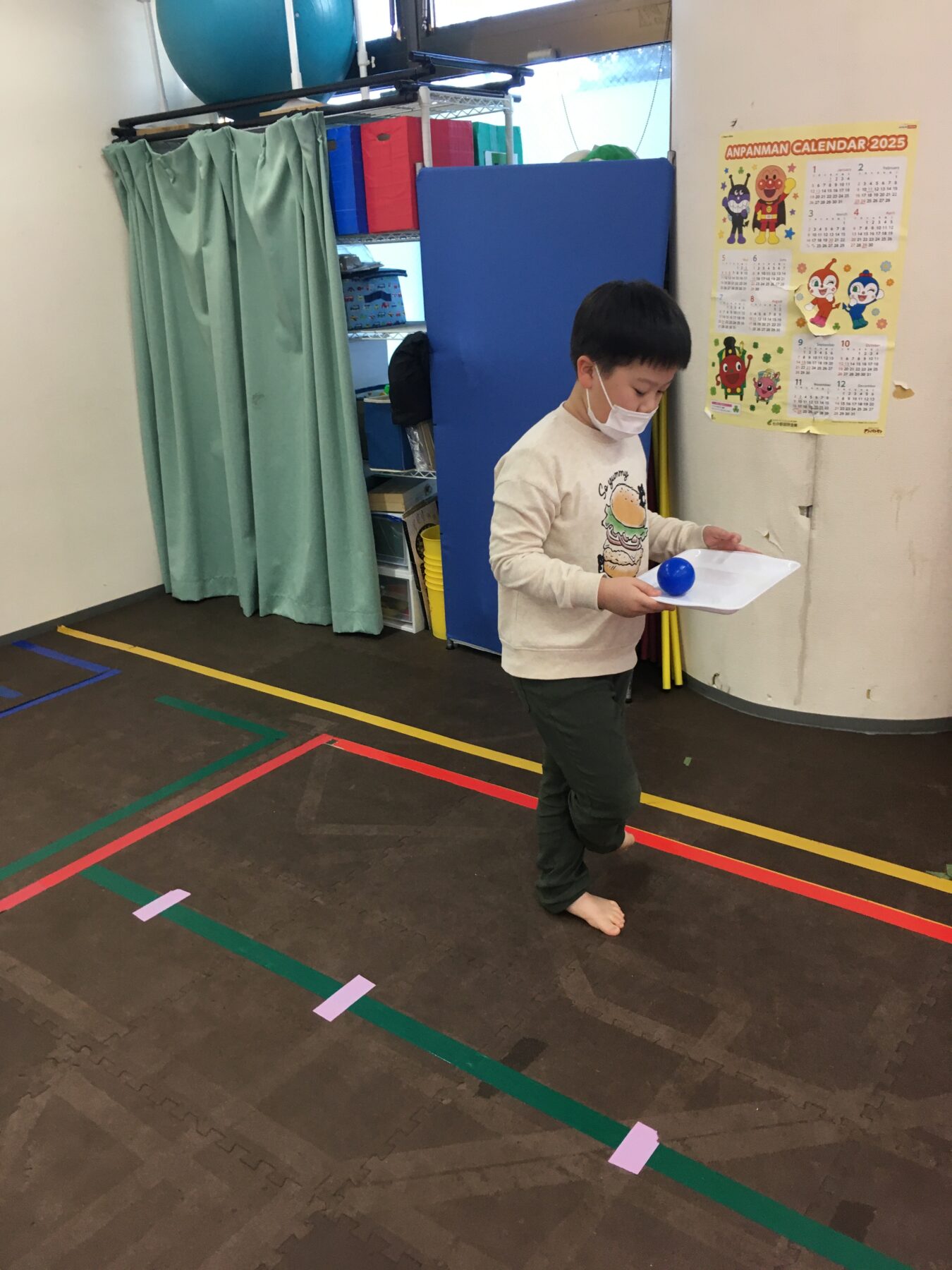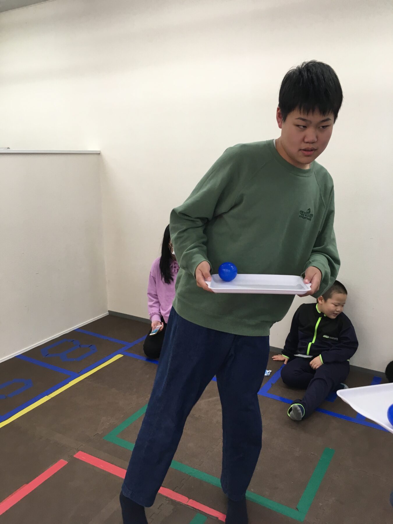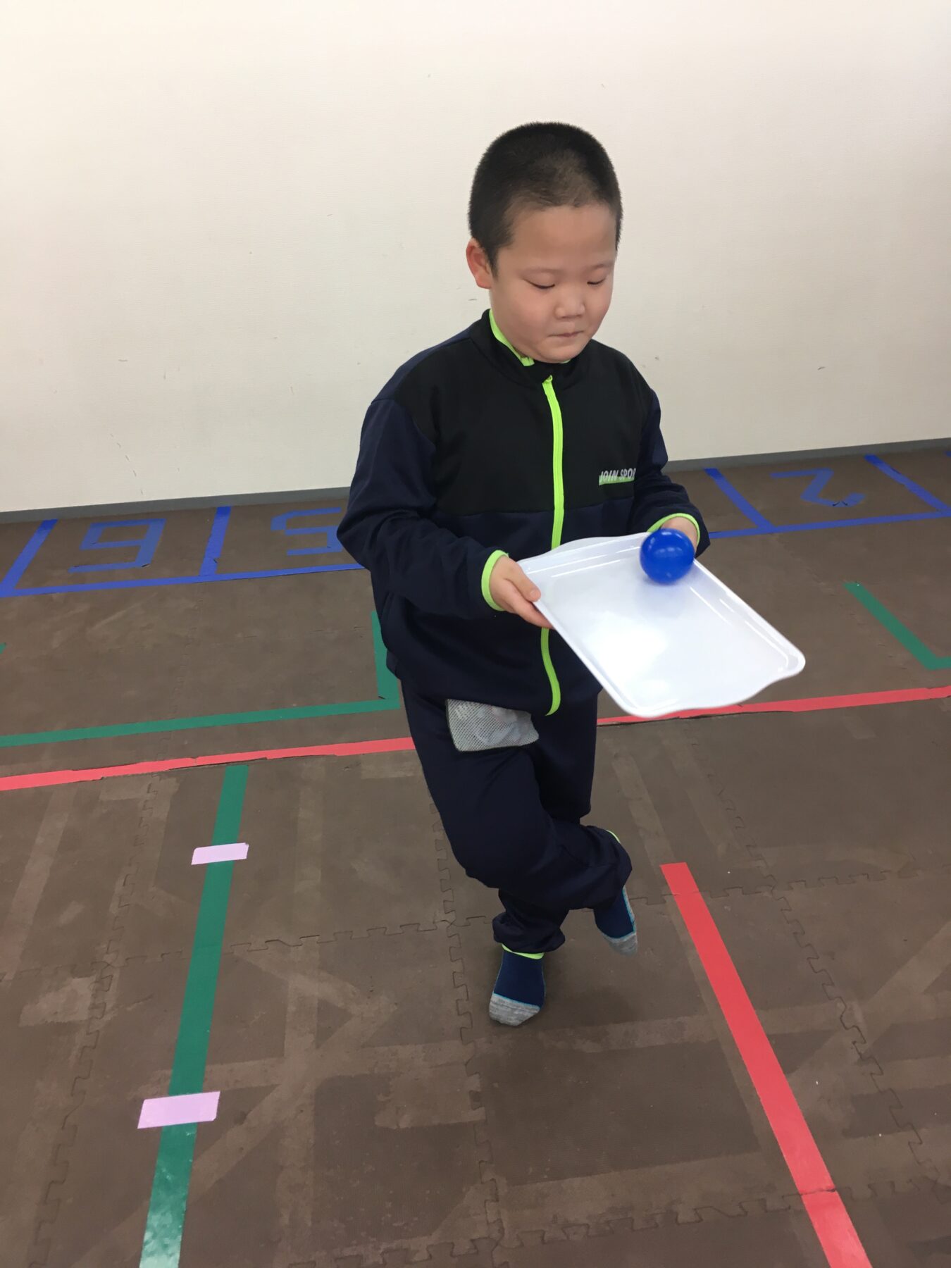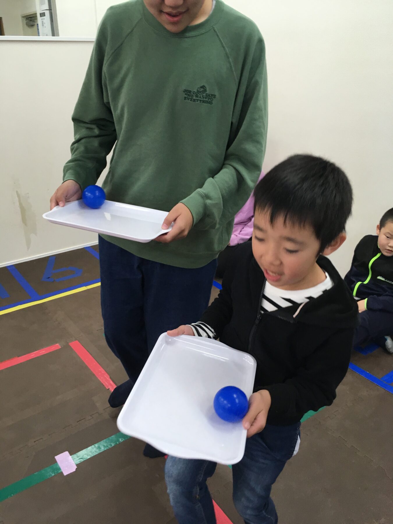 その後、トレイとボールを使用して、一人一人に体幹を強くするトレーニングに取り組んでいただきました!