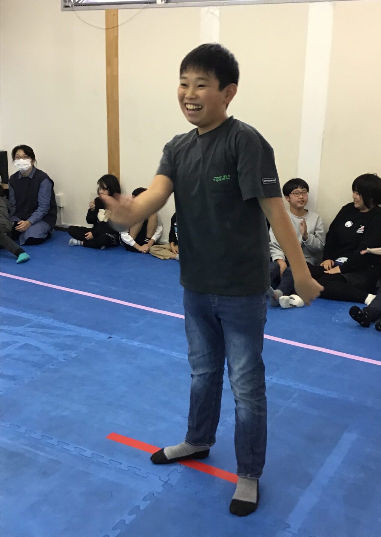 本日の活動は、サポーターが持った輪の中にボールをシュート(入れる)を決める活動でした。