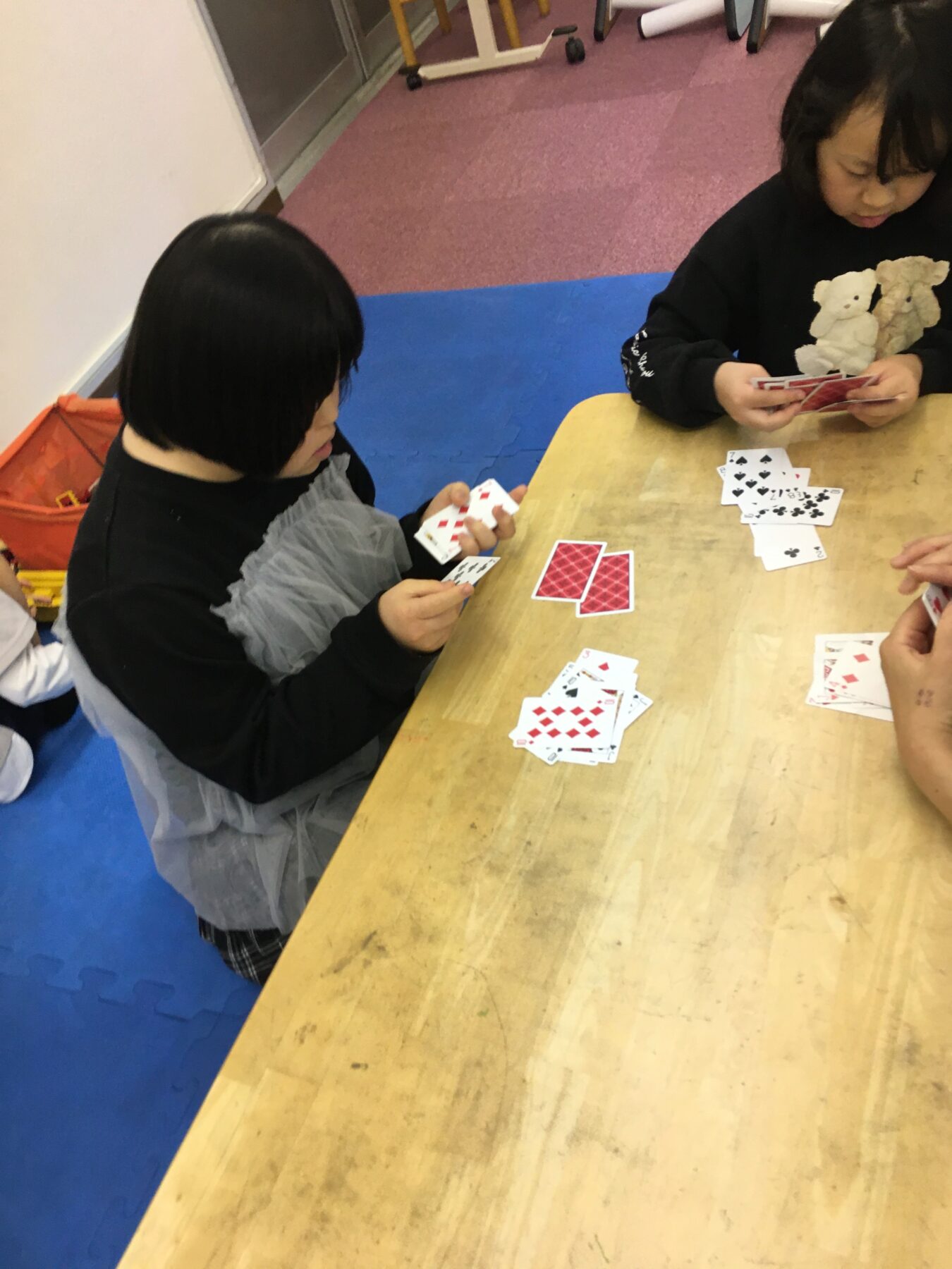 ドッヂボールやカードゲーム、お友達やサポーターと一緒なって遊んで過ごす事が出来ました。