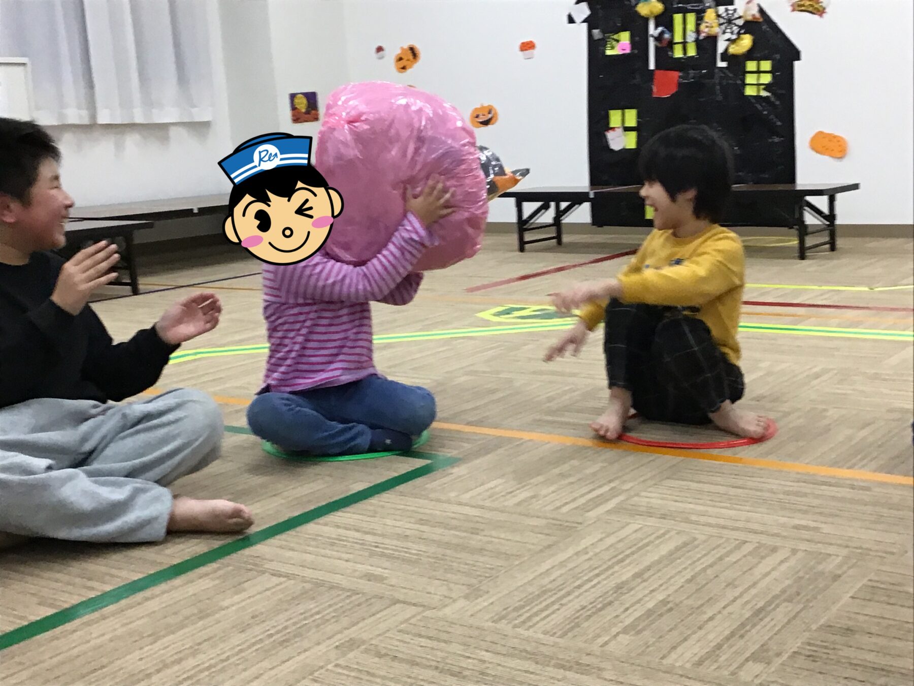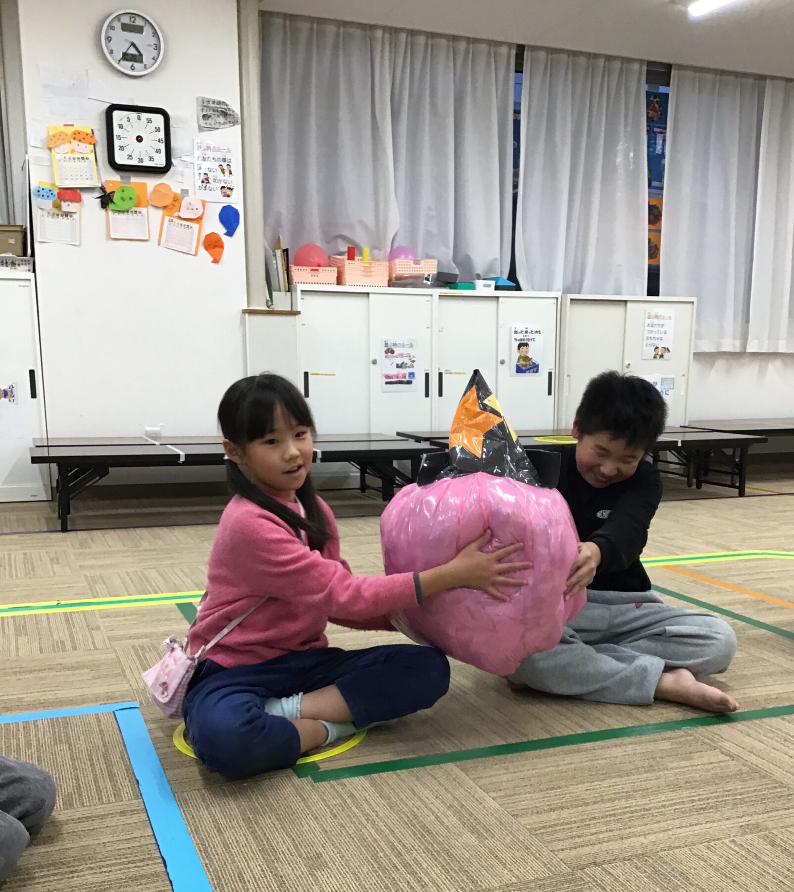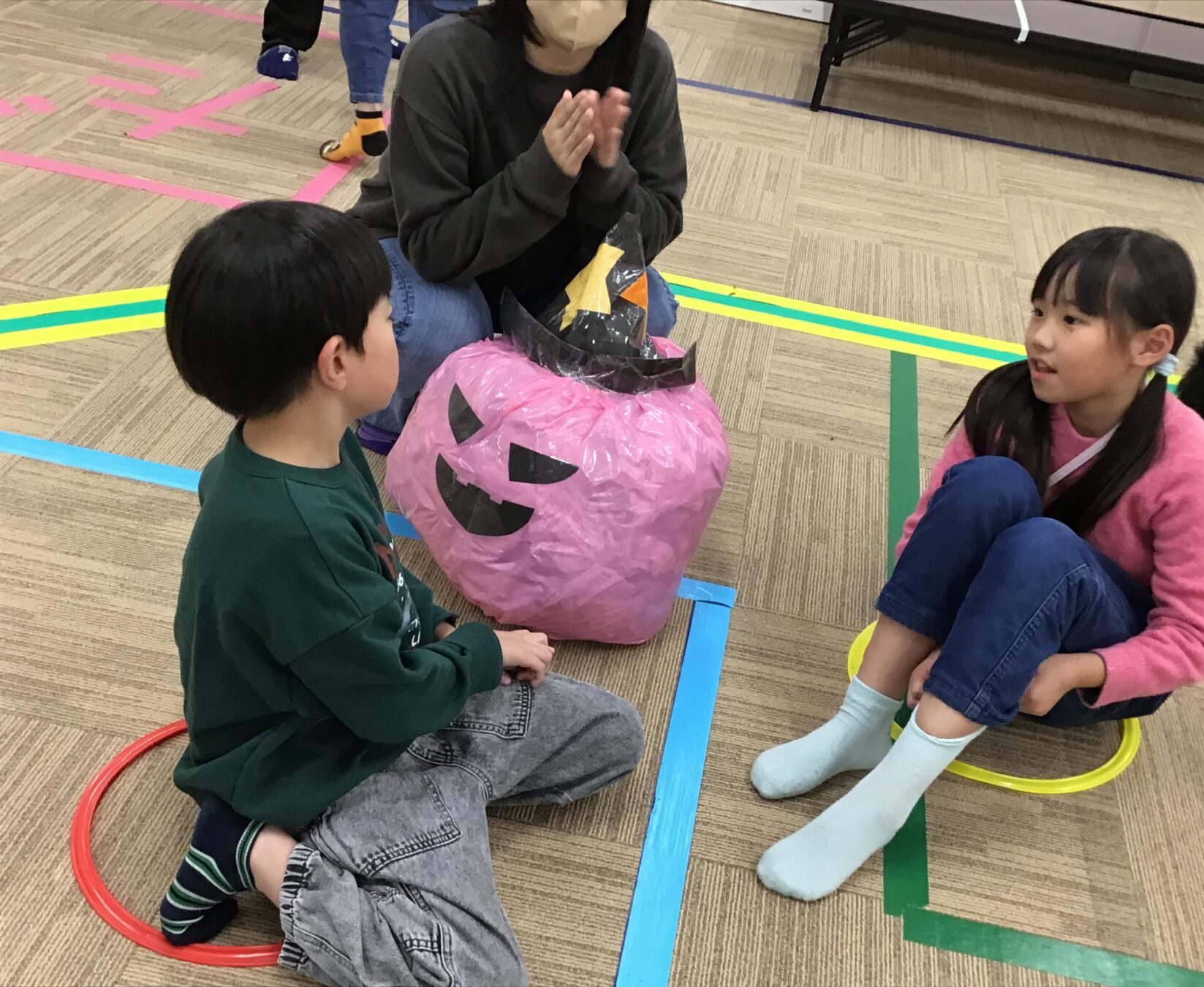 風船リレーを楽しんだ後は、ハロウィンのかぼちゃを使ったバクダンゲームを行いました!🎃
