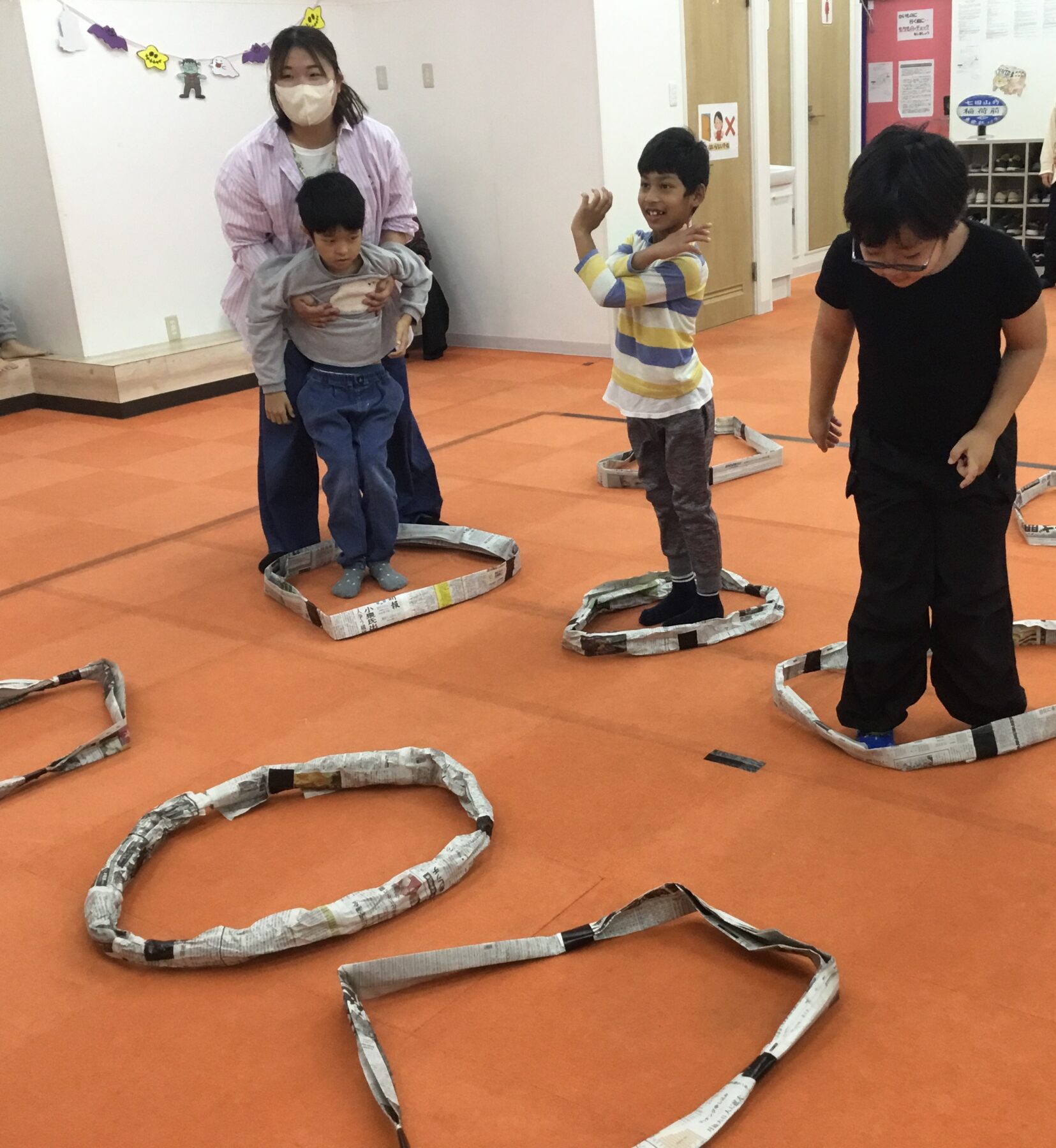 としまして、止まったり ポーズをとったり フラフープの道を使って、瞬発力 バランス感覚を養いながら、楽しみました。